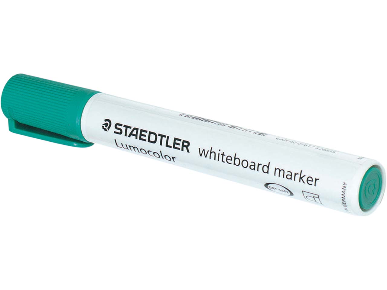 Der Whiteboard-Marker Lumocolor 351 eignet sich neben der Nutzung mit Whiteboards für nahezu alle glatten Flächen und lässt sich von diesen rückstandsfrei und trocken abwischbar. Die grüne Tinte ist schnelltrocknend und geruchsarm. Der Stift trocknet dank "DRY SAFE" nicht ein. Blockierte Rundspitze, Strichstärke ca. 2 mm.