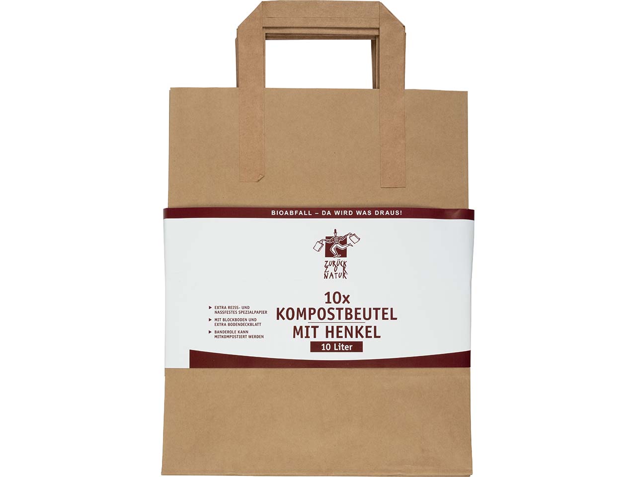 Bioabfall-Kompostbeutel aus Recyclingpapier, mit Tragehenkel, 10 l, 10 Stk.
