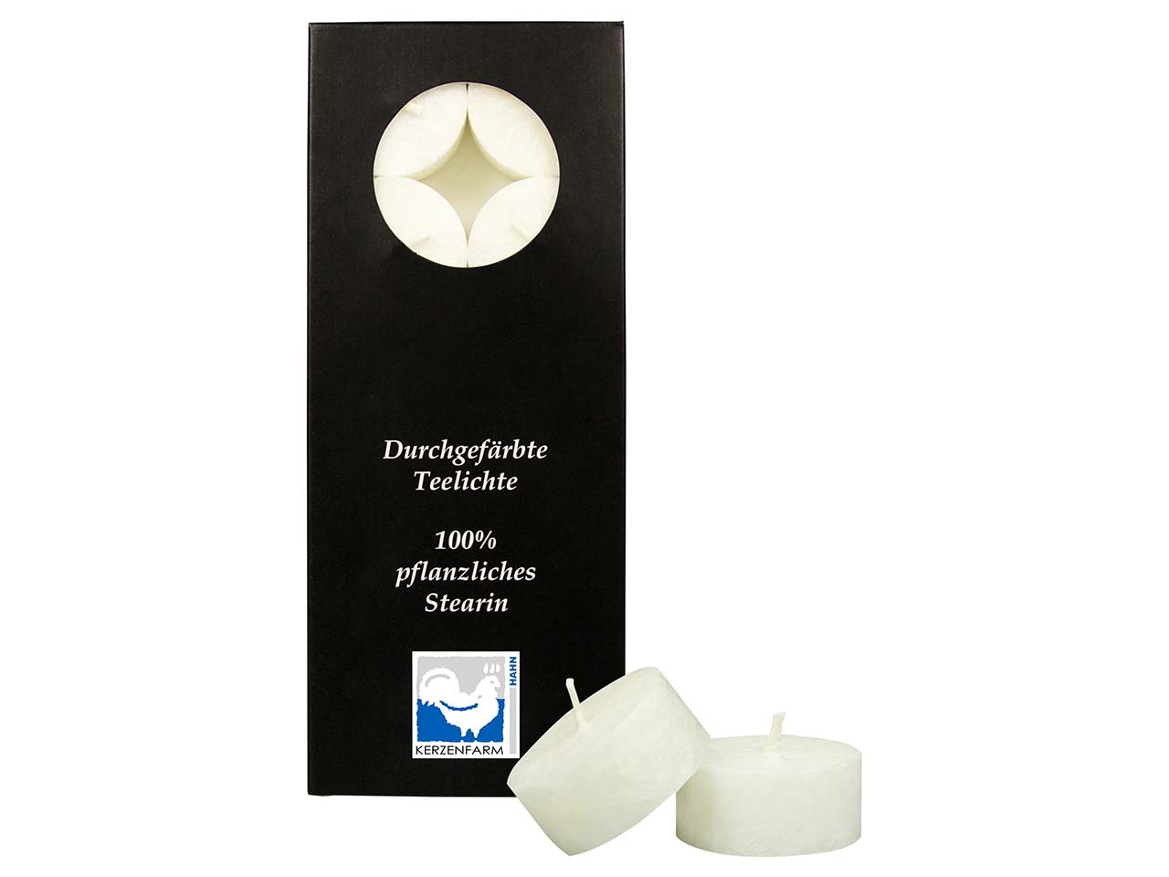 Mit Teelichtern lässt sich eine wunderschöne Tischdekoration schaffen, die besonders gemütlich wirkt. Die durchgefärbten Teelichter von Kerzenfarm ohne Aluhülle sind perfekt für ein besinnliches Wohnambiente und lassen sich im Glas verwenden. Die Lichter aus pflanzlichem Stearin brennen geruchsneutral, rußarm, besonders hell und ruhig ab. Sie haben exzellente Brenneigenschaften und brennen jeweils bis zu 4 Stunden. Für Kerzen aus Stearin ist der schöne, netzartige Rand, der sich beim Abbrand der Kerze um den Wachsteller bildet typisch. Diese charakteristische Aussehen haben nur Stearinkerzen! Erhältlich in verschiedenen Farben. Ø 3,8 x 1,8 cm. 1 Pack = 10 Stk.