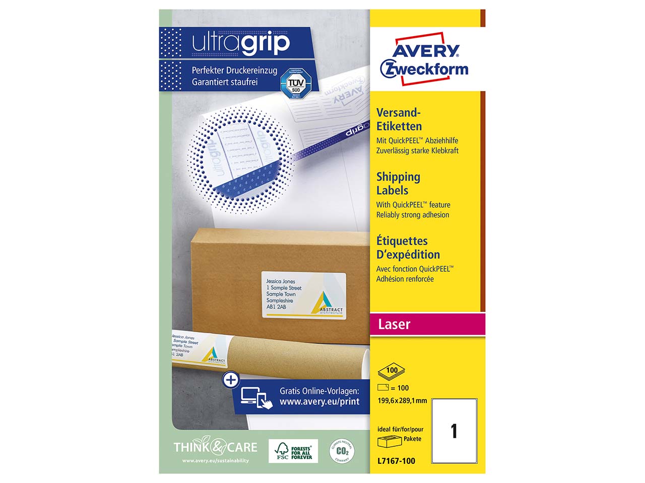 Mit diesen Versandetiketten können Sie gebrauchte Postsendungen ganz einfach wiederverwenden! Die blickdichten, weißen Etiketten laufen problemlos und staufrei durch Inkjet- und Laserdrucker, zudem eignen sie sich für die Online-Frankierung. Mit der "QuickPEEL"-Technologie lassen sich die Etiketten schnell und sauber abziehen. Sie sind mit dem Altpapier recycelbar. B 199,6 x H 289,1 mm. 1 Pack = 100 Blatt (100 Etiketten).