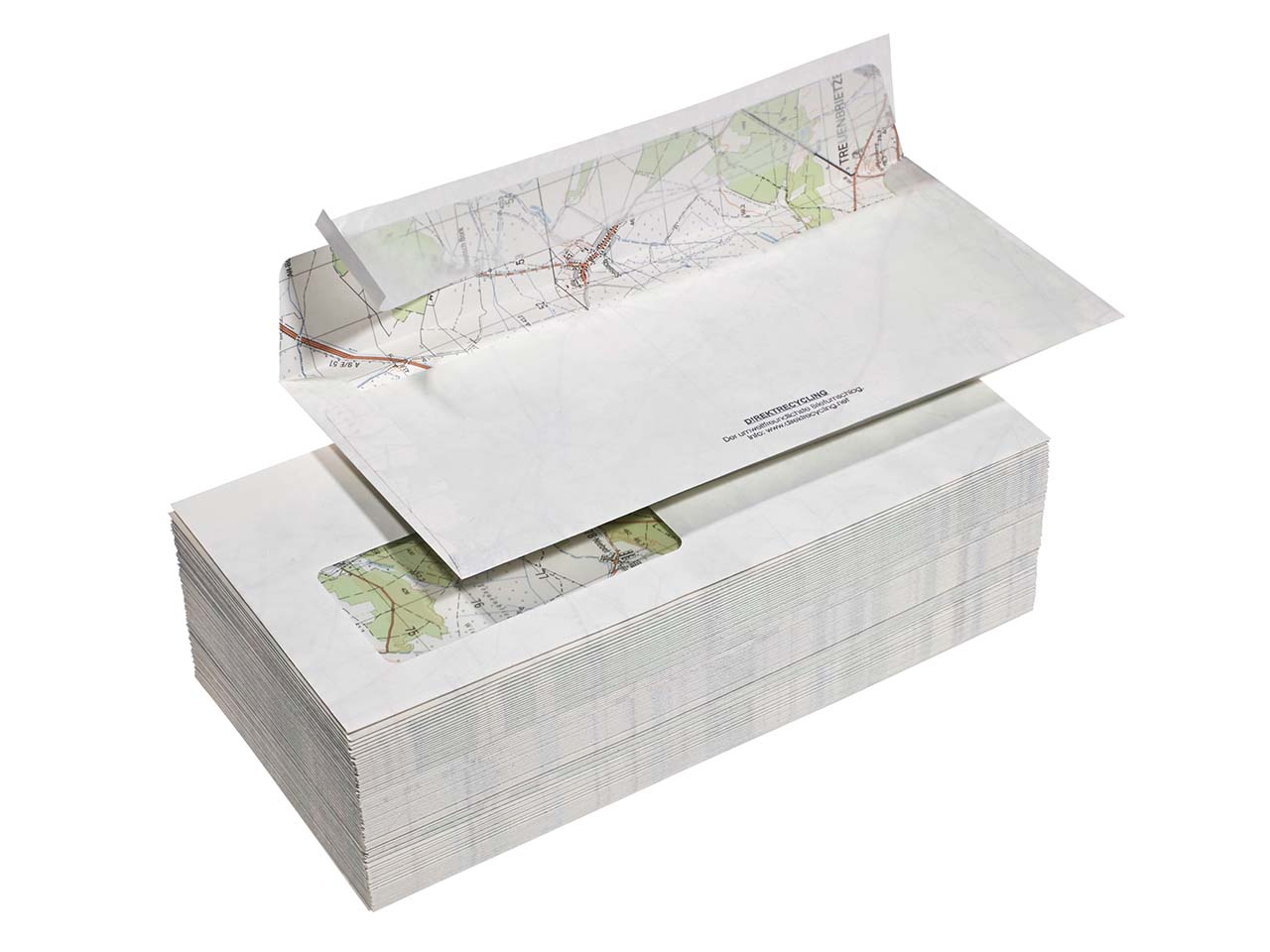 Hinweis: Bei der Produktion der DRP Briefumschläge mit innenliegender Karte wird die gesamte Landkarte recycelt. Aus diesem Grund kann es vorkommen, dass die abgebildeten Karten auch Legenden enthalten. Die Varianten mit der Karten außen werden handverlesen und sind immer mit einem Kartenaufdruck.