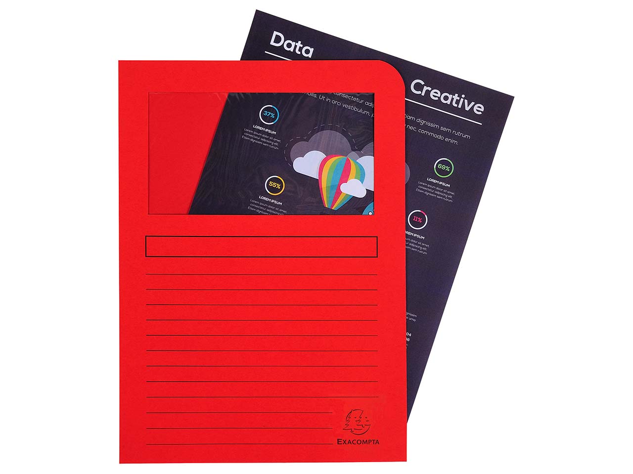 Der praktische Aktendeckel von Exacompta ist der ideale Helfer für den Büroalltag. Das große Sichtfenster gewährt einen direkten Einblick in die Dokumente. Der Organisationsaufdruck auf der Vorderseite bietet viel Platz für Beschriftungen. Hergestellt aus Recyclingkarton sind die Fenstermappen rutschsicher und stapelbar. Die Fenstermappen werden in einer Großpackung mit 100 Stück geliefert.