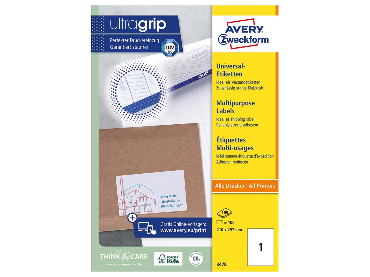 Avery Zweckform Universaletiketten "3478" 210 x 297 mm, 100 Stk.
