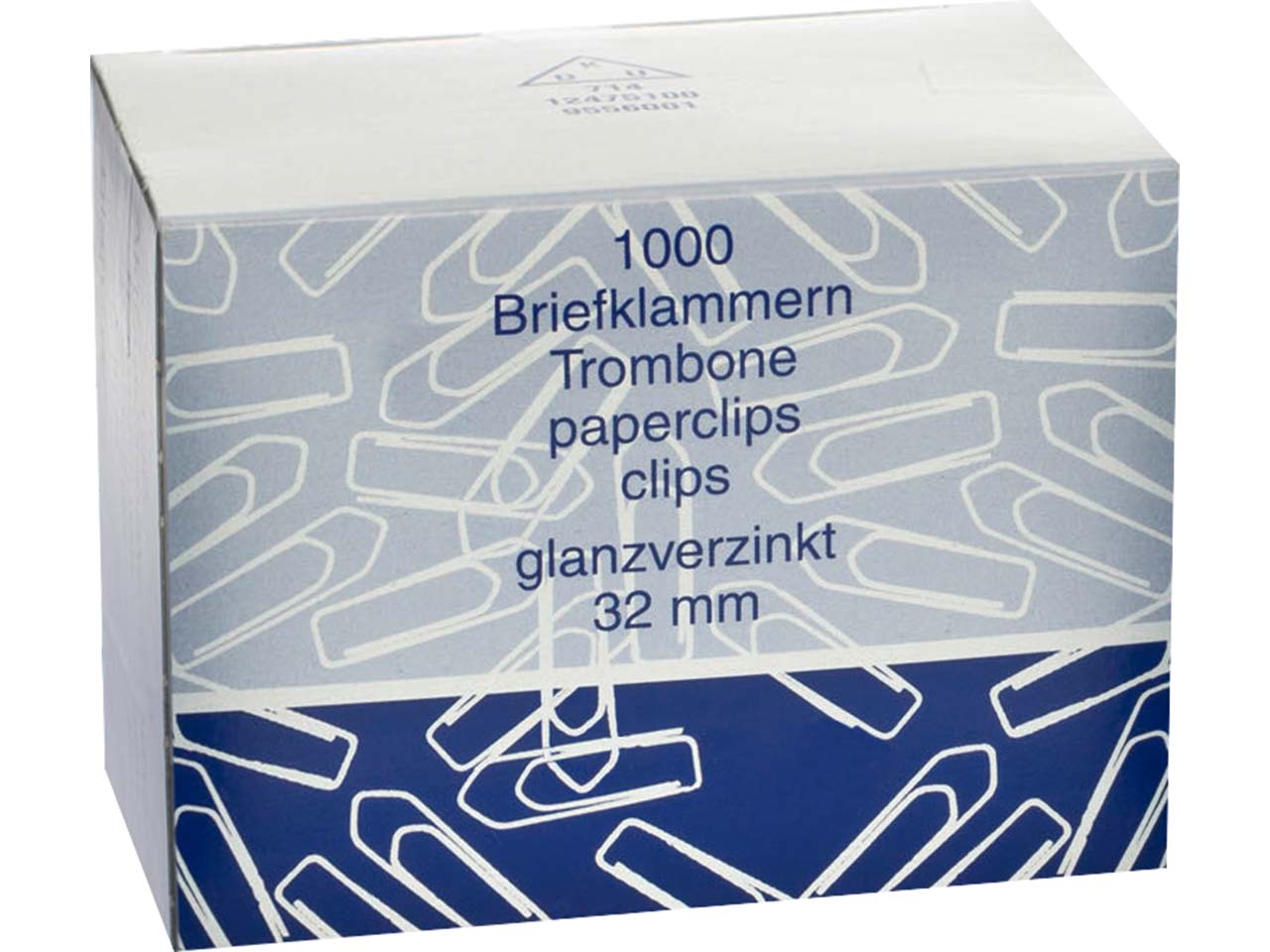 Die polierten Büroklammern in klassischer Form halten Akten und Unterlagen sicher zusammen. Sie sind ideal, um Notizen kurzfristig zu befestigen, ohne dabei das Papier zu beschädigen. Die silbernen Klammern werden aus verzinktem Stahldraht gefertigt.