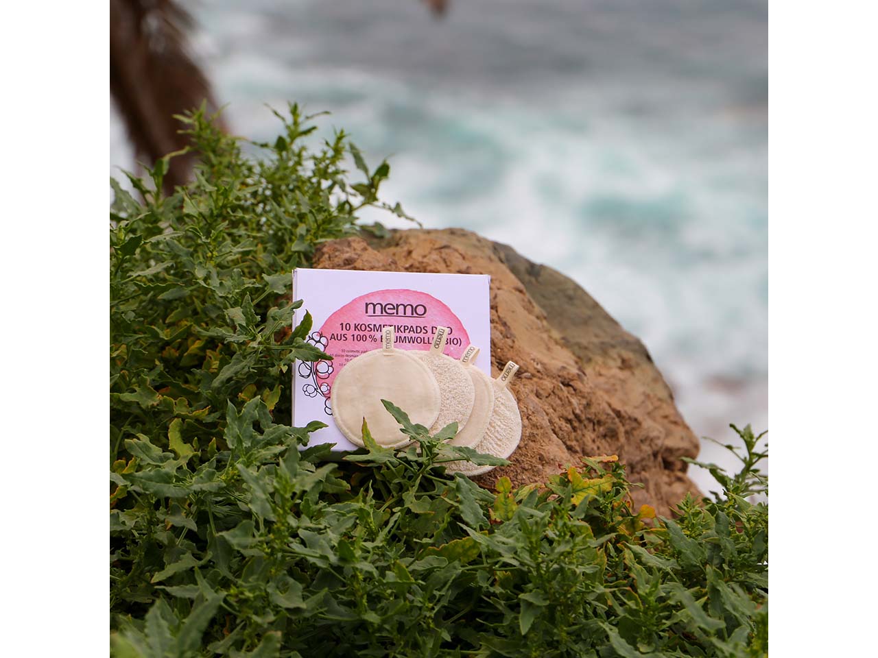 Die memo Kosmetik-Pads stellen eine nachhaltige Alternative zu Einweg-Kosmetikpads dar, sie können gewaschen und immer wieder zur Gesichtsreinigung genutzt werden – perfekt, um langfristig Müll zu vermeiden und die Umwelt zu schonen. Die Verpackung besteht aus Recycling-Karton.