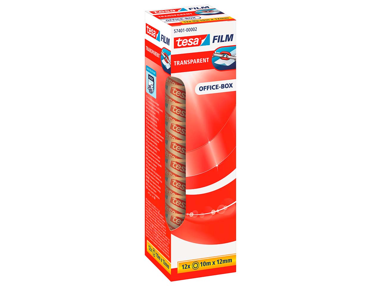 Der Klassiker von tesa: Der "tesafilm" ist ein universell verwendbares Klebeband zum Verpacken, Zukleben, Befestigen und Fixieren. Es ist reißfest, stark klebend, alterungsbeständig und kristallklar. Daher auch nahezu unsichtbar auf fast allen Untergründen – so entstehen beim Kopieren keine Schatten. B 12 mm x L 10 m. 1 Pack = 12 Stk.