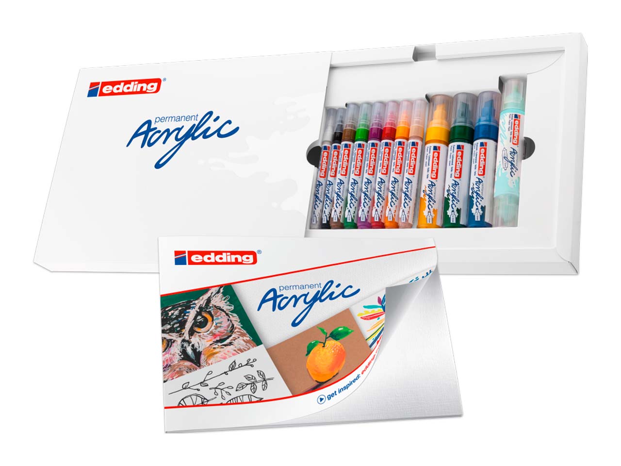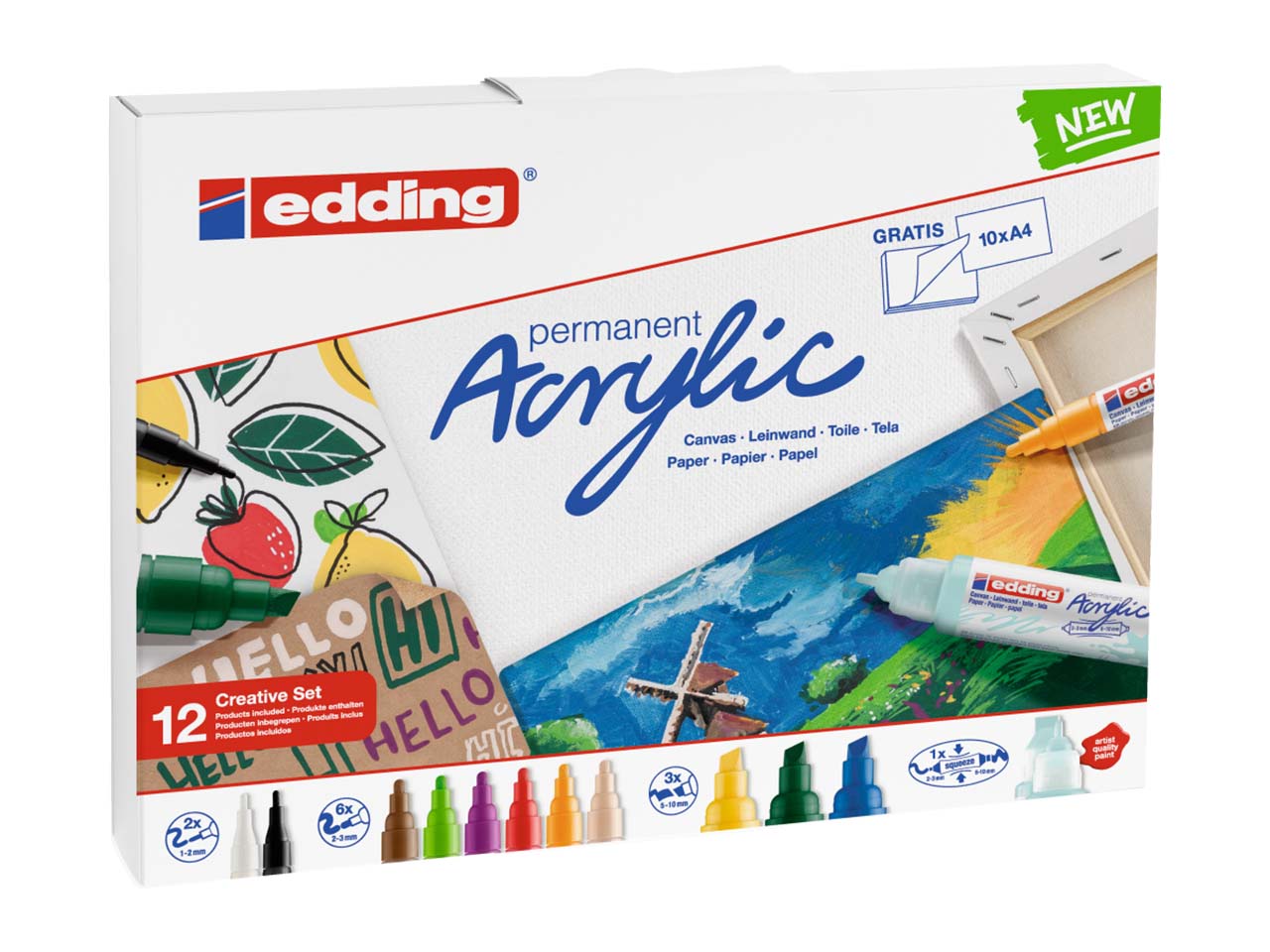 12er Set edding Acrylmarker "Acrylic" Kreativset Basic, farbig sortiert