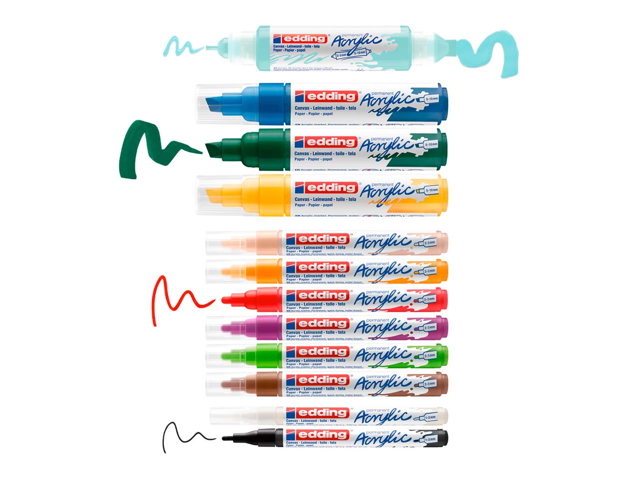 12er Set edding Acrylmarker "Acrylic" Kreativset Basic, farbig sortiert