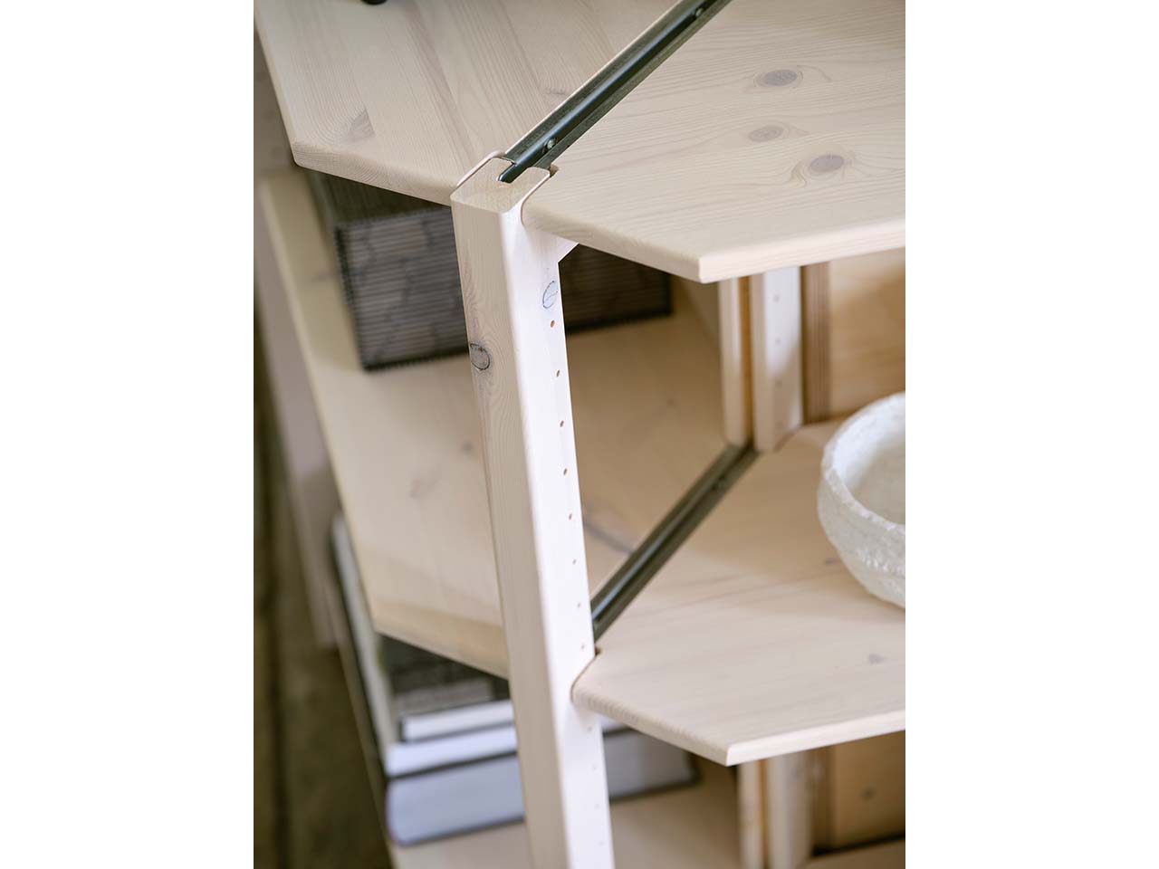 Die 2 Eckböden für das Regal "ABC" werden in Europa produziert und aus nordischer Kiefer gefertigt. Die Oberfläche ist lösemittelfrei lasiert.