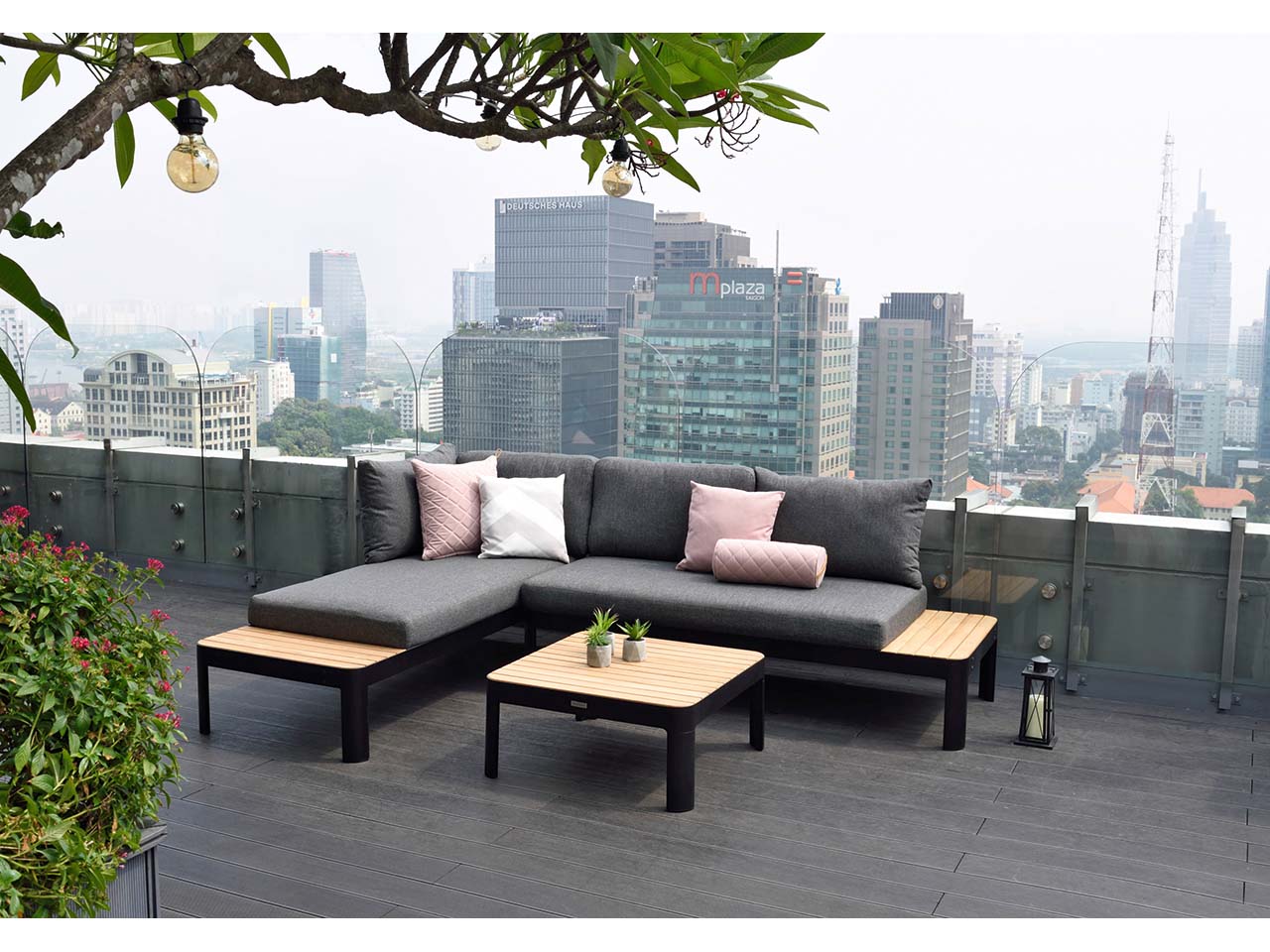 - Modernes Gartensofa mit Sitzpolster und Kissen