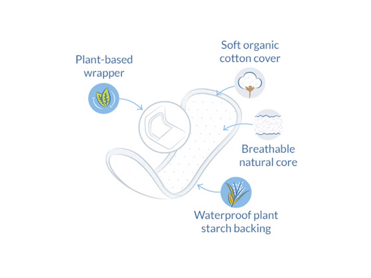 Für die Herstellung dieser Einlagen werden ausschließlich natürliche, erneuerbare Materialien und kontrolliert biologisch angebaute Baumwolle verwendet. Diese Art von Anbau soll die Umwelt nur geringfügig belasten und dafür sorgen, dass Produkte so wenig wie möglich Schadstoffe enthalten. Deswegen wird auf chemische Pflanzenschutzmittel, mineralische Dünger und Gentechnik verzichtet. Zudem garantiert das Made Safe- Gütesiegel, dass das Produkt frei von synthetischen Materialien und chemischen Zusätzen wie Chlor, Bindemitteln, Tensiden, Parfümstoffen, Polyacrylen oder Färbemitteln ist. Für die Garantie der natürlichen Inhaltsstoffe wurde das Produkt mit dem USDA Biobased-Label ausgezeichnet. Die Einlagen sind Vegetarian Society Approved, da sie ohne Tierversuche hergestellt und frei von tierischen Substanzen sind. Das Produkt wurde außerdem mit dem Gütesiegel Nordic Swan ausgezeichnet. Die Zertifizierung untersucht die Umweltauswirkungen eines Produkts sowie die Sicherstellung einer umweltschonenden Herstellung.