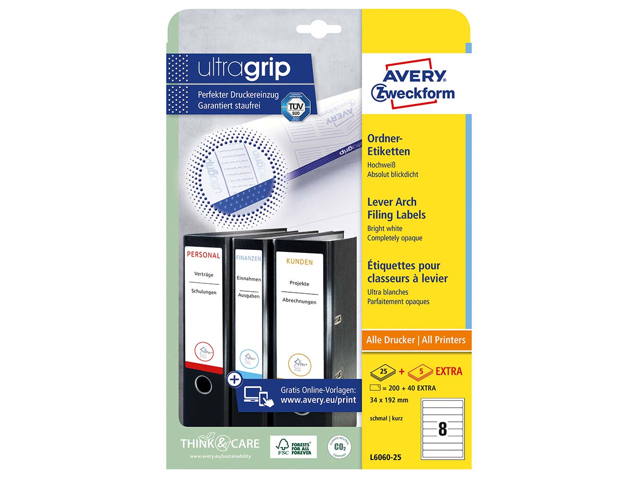 Jetzt gratis 20 % mehr Inhalt: Die selbstklebenden Ordneretiketten sind geeignet für den Einsatz auf Kopierer, Tintenstrahl- und Laserdrucker. Für Format DIN A4. B 3,4 x H 19,2 cm. Inkl. Online-Software und Vorlagen. 1 Pack = 200 + 40 Etiketten.