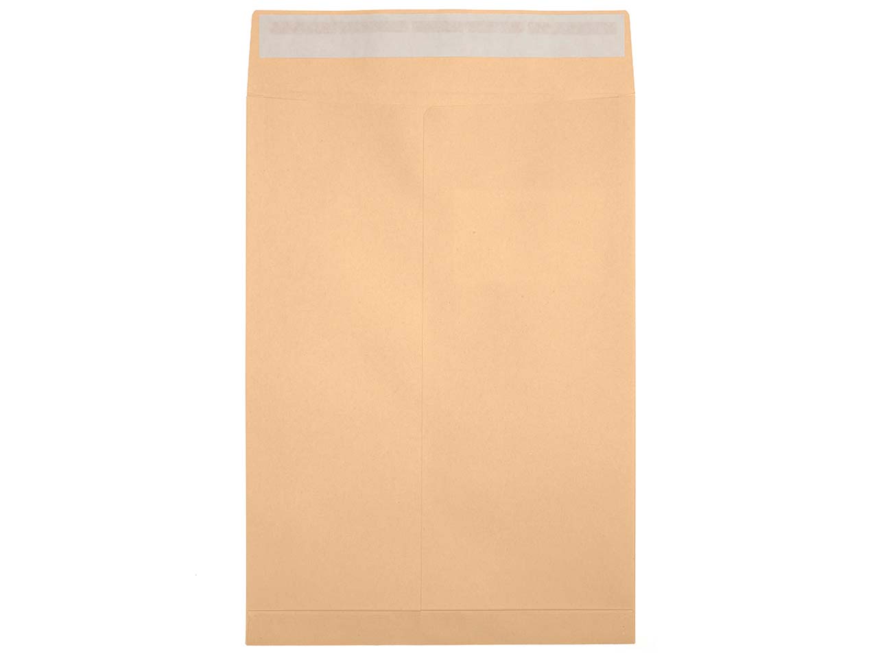 Faltentaschen braun DIN C4, Haftklebung, mit Fenster 130 g/m²