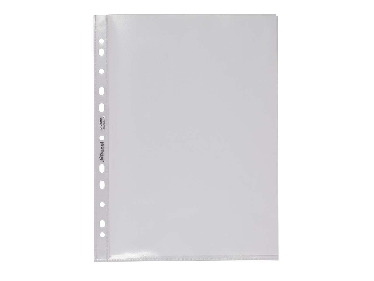 25 Prospekthüllen aus zu 90 % PP-Recyclingmaterial. Mit 11-fach-Lochung und leicht genarbter Oberfläche. 100 µ stark und gut für starke Beanspruchung geeignet. Für Format DIN A4. 1 Pack = 25 Stk.