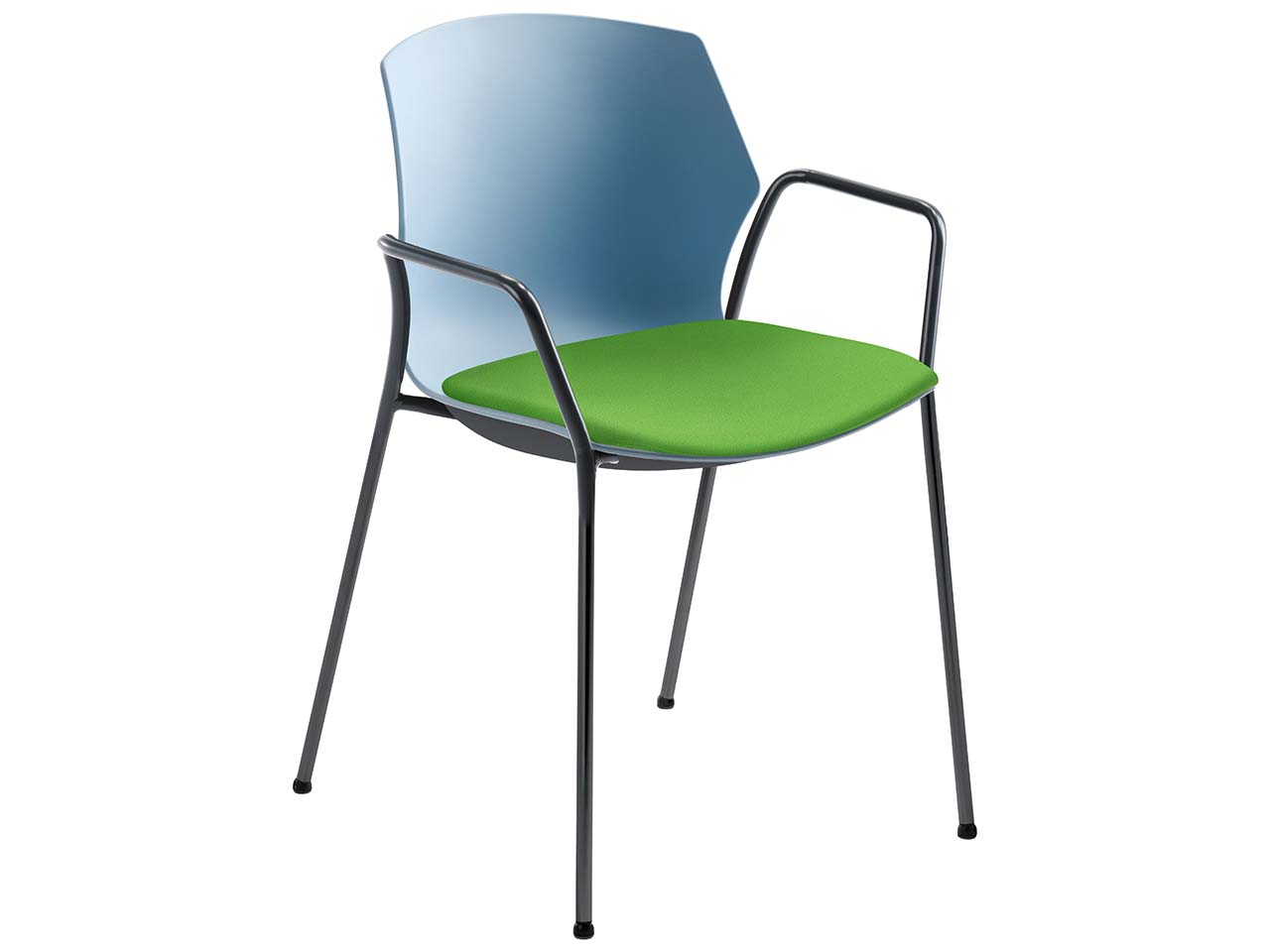 Vielseitig, robust und langlebig: Dieser Stapelstuhl bereichert Büros, Bildungseinrichtungen und Wartezimmer. Optisch überzeugt die Sitzgelegenheit mit hellblauer Lehne und einem farbenfrohen Sitzpolster. Das Design ist zeitlos-modern gehalten, sodass sich die Stühle in verschiedene Stile perfekt einfügen. Bis zu 6 Besucherstühle lassen sich übereinander stapeln, sodass sie bei Nichtgebrauch weniger Platz benötigen. Der exzellente Sitzkomfort entsteht durch die gepolsterte Sitzfläche, die einen Bezug aus recyceltem post-consumer PET hat. Die Armlehnen tragen ebenfalls zum Komfort bei. 1 Pack = 2 Stühle.