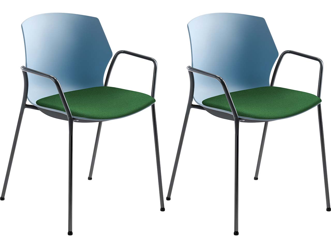 Vielseitig, robust und langlebig: Dieser Stapelstuhl bereichert Büros, Bildungseinrichtungen und Wartezimmer. Optisch überzeugt die Sitzgelegenheit mit hellblauer Lehne und einem farbenfrohen Sitzpolster. Das Design ist zeitlos-modern gehalten, sodass sich die Stühle in verschiedene Stile perfekt einfügen. Bis zu 6 Besucherstühle lassen sich übereinander stapeln, sodass sie bei Nichtgebrauch weniger Platz benötigen. Der exzellente Sitzkomfort entsteht durch die gepolsterte Sitzfläche, die einen Bezug aus recyceltem post-consumer PET hat. Die Armlehnen tragen ebenfalls zum Komfort bei. 1 Pack = 2 Stühle.