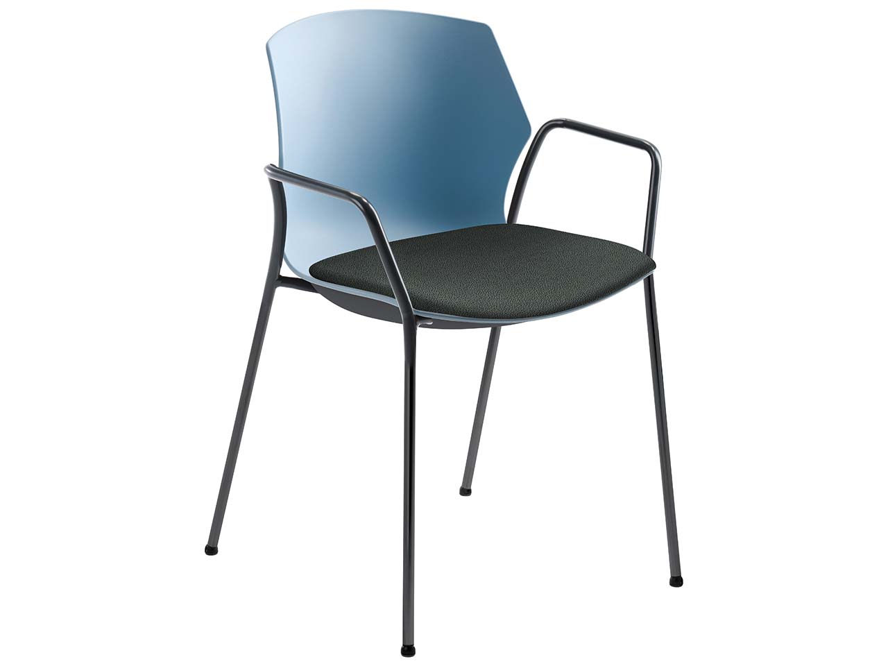 Vielseitig, robust und langlebig: Dieser Stapelstuhl bereichert Büros, Bildungseinrichtungen und Wartezimmer. Optisch überzeugt die Sitzgelegenheit mit hellblauer Lehne und einem farbenfrohen Sitzpolster. Das Design ist zeitlos-modern gehalten, sodass sich die Stühle in verschiedene Stile perfekt einfügen. Bis zu 6 Besucherstühle lassen sich übereinander stapeln, sodass sie bei Nichtgebrauch weniger Platz benötigen. Der exzellente Sitzkomfort entsteht durch die gepolsterte Sitzfläche, die einen Bezug aus recyceltem post-consumer PET hat. Die Armlehnen tragen ebenfalls zum Komfort bei. 1 Pack = 2 Stühle.
