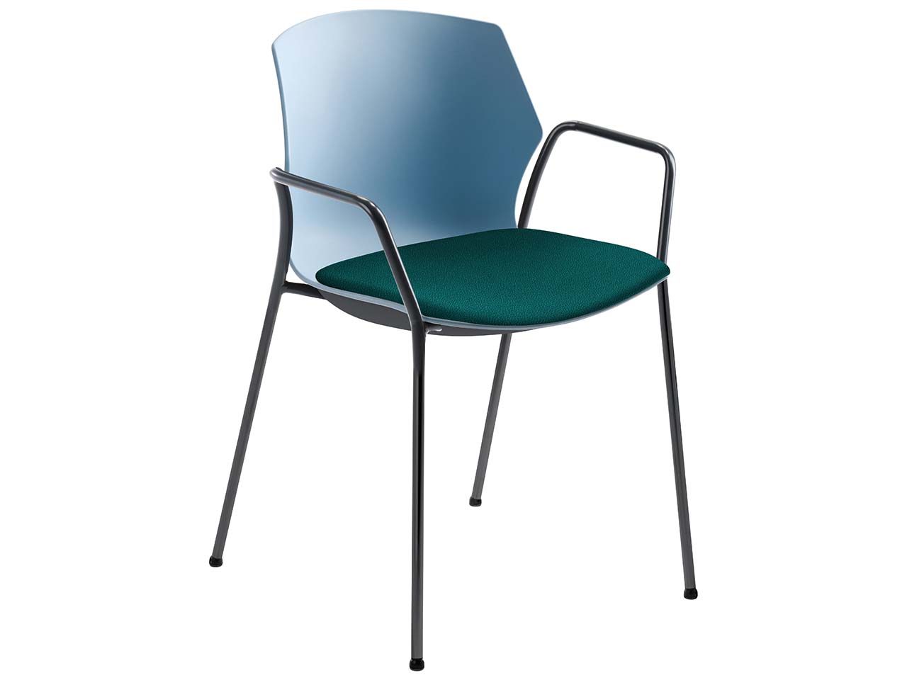 Vielseitig, robust und langlebig: Dieser Stapelstuhl bereichert Büros, Bildungseinrichtungen und Wartezimmer. Optisch überzeugt die Sitzgelegenheit mit hellblauer Lehne und einem farbenfrohen Sitzpolster. Das Design ist zeitlos-modern gehalten, sodass sich die Stühle in verschiedene Stile perfekt einfügen. Bis zu 6 Besucherstühle lassen sich übereinander stapeln, sodass sie bei Nichtgebrauch weniger Platz benötigen. Der exzellente Sitzkomfort entsteht durch die gepolsterte Sitzfläche, die einen Bezug aus recyceltem post-consumer PET hat. Die Armlehnen tragen ebenfalls zum Komfort bei. 1 Pack = 2 Stühle.