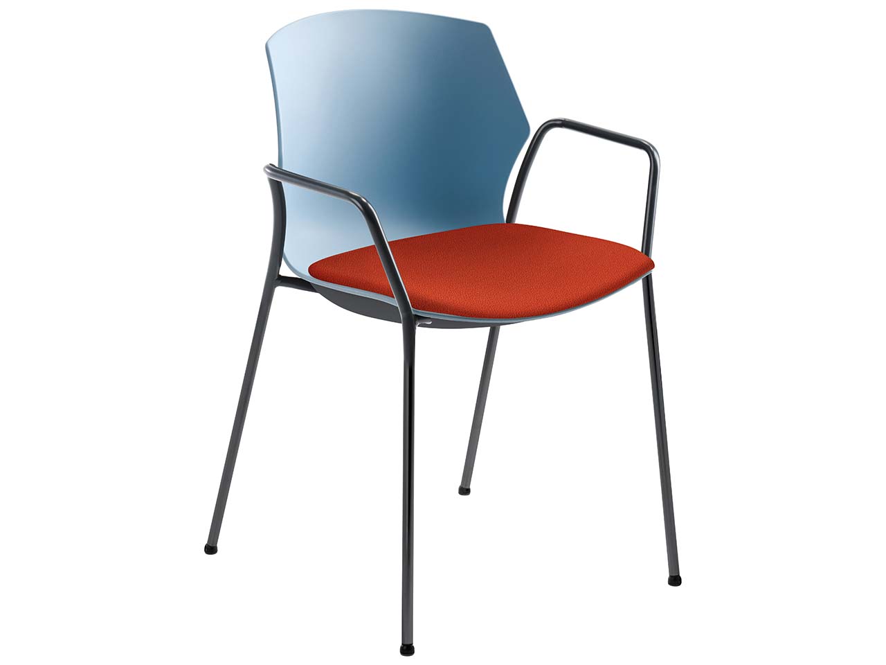 Vielseitig, robust und langlebig: Dieser Stapelstuhl bereichert Büros, Bildungseinrichtungen und Wartezimmer. Optisch überzeugt die Sitzgelegenheit mit hellblauer Lehne und einem farbenfrohen Sitzpolster. Das Design ist zeitlos-modern gehalten, sodass sich die Stühle in verschiedene Stile perfekt einfügen. Bis zu 6 Besucherstühle lassen sich übereinander stapeln, sodass sie bei Nichtgebrauch weniger Platz benötigen. Der exzellente Sitzkomfort entsteht durch die gepolsterte Sitzfläche, die einen Bezug aus recyceltem post-consumer PET hat. Die Armlehnen tragen ebenfalls zum Komfort bei. 1 Pack = 2 Stühle.