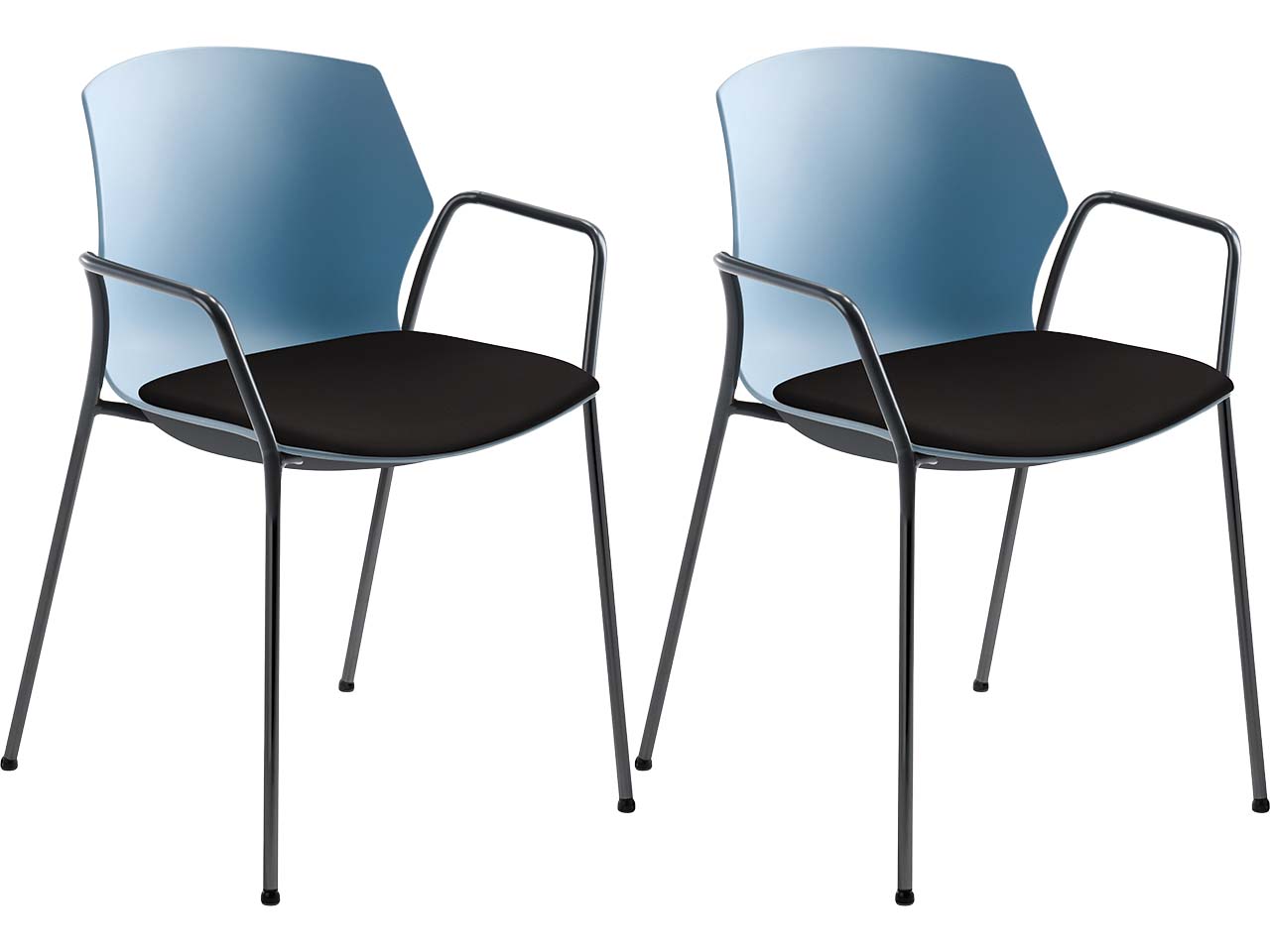 Vielseitig, robust und langlebig: Dieser Stapelstuhl bereichert Büros, Bildungseinrichtungen und Wartezimmer. Optisch überzeugt die Sitzgelegenheit mit hellblauer Lehne und einem farbenfrohen Sitzpolster. Das Design ist zeitlos-modern gehalten, sodass sich die Stühle in verschiedene Stile perfekt einfügen. Bis zu 6 Besucherstühle lassen sich übereinander stapeln, sodass sie bei Nichtgebrauch weniger Platz benötigen. Der exzellente Sitzkomfort entsteht durch die gepolsterte Sitzfläche, die einen Bezug aus recyceltem post-consumer PET hat. Die Armlehnen tragen ebenfalls zum Komfort bei. 1 Pack = 2 Stühle.