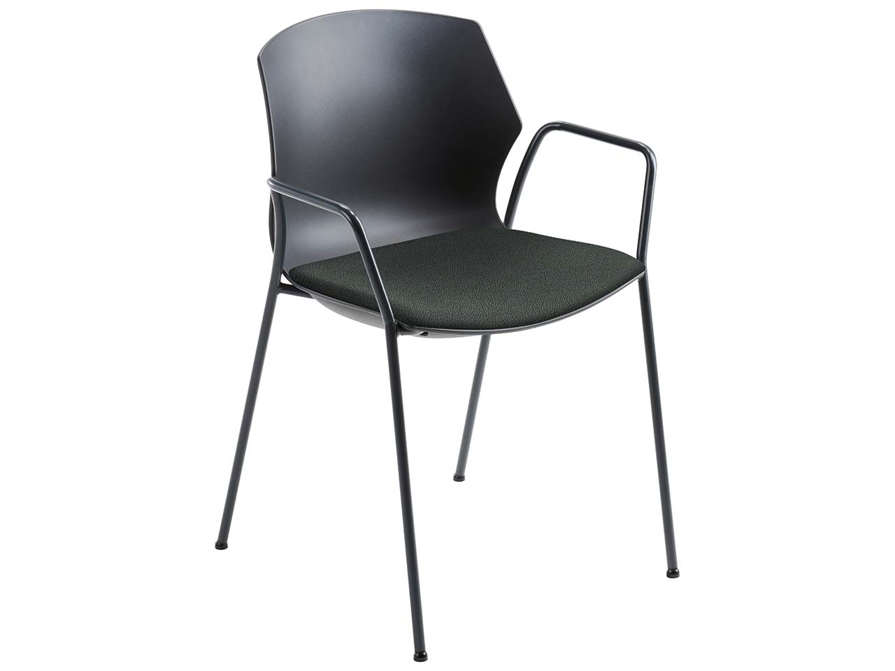 Dieser Besucherstuhl zeichnet sich durch seine vielseitigen Einsatzmöglichkeiten aus! Das moderne Design mit schwarzer Lehne und farbenfrohem Sitzpolster setzt Akzente im Büro, in Bildungseinrichtungen oder in Wartezimmern. Praktischerweise lassen sich bis zu 6 Stühle stapeln, sodass sie bei Nichtnutzung nicht viel Platz brauchen. Der exzellente Sitzkomfort entsteht durch die gepolsterte Sitzfläche, die einen Bezug aus recyceltem post-consumer PET hat. Die Armlehnen des Gästestuhls tragen ebenfalls zum Komfort bei. 1 Pack = 2 Stühle.