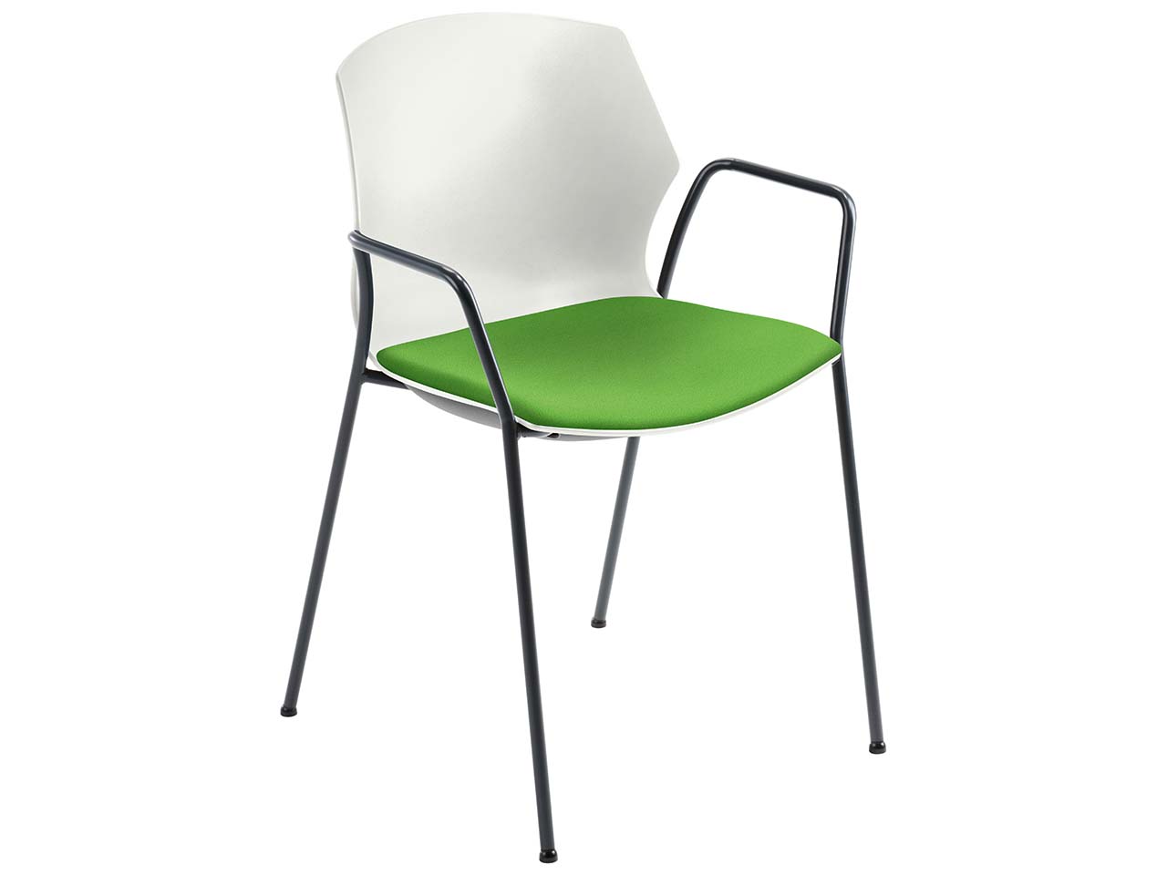 Farbenfroh, langlebig und praktisch: Dieser Stapelstuhl kann vielseitig eingesetzt werden! Das moderne Design und die Stapelbarkeit von bis zu 6 Stühlen machen ihn besonders praktisch. Er eignet sich für die Verwendung im Büro, in Bildungseinrichtungen oder auch als Gästestuhl. Hoher Sitzkomfort entsteht durch die gepolsterte Sitzfläche, die einen Bezug aus recyceltem post-consumer PET hat. Das Gestell ist besonders stabil. 1 Pack = 2 Stühle.