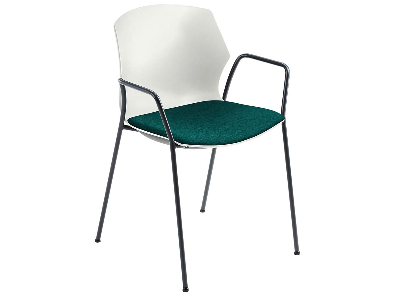 Farbenfroh, langlebig und praktisch: Dieser Stapelstuhl kann vielseitig eingesetzt werden! Das moderne Design und die Stapelbarkeit von bis zu 6 Stühlen machen ihn besonders praktisch. Er eignet sich für die Verwendung im Büro, in Bildungseinrichtungen oder auch als Gästestuhl. Hoher Sitzkomfort entsteht durch die gepolsterte Sitzfläche, die einen Bezug aus recyceltem post-consumer PET hat. Das Gestell ist besonders stabil. 1 Pack = 2 Stühle.