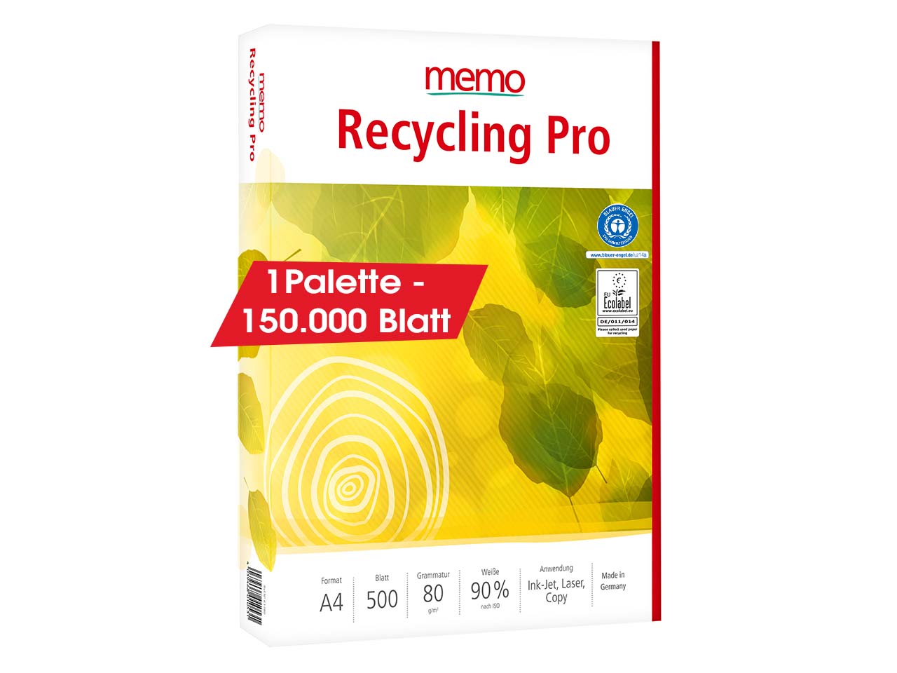 300 x 500 Blatt memo Kopierpapier "Recycling Pro" DIN A4 - Ganze Palette