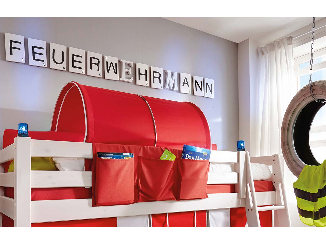 In diesen 3 Fächern können Kinder alles verstauen, was am Bett immer griffbereit sein soll. Die Textiltaschen eignen sich z.B. für Kuscheltiere, Puppen, Bücher, Zeitschriften oder eine Trinkflasche. Durch die Herstellung aus Baumwolle ist das Zubehör ausgesprochen langlebig. Sie wird ganz einfach am Geländer des „Infanskids“ Hochbetts angehängt. Werkzeug wird dafür nicht benötigt! B 86 x H 38 cm.