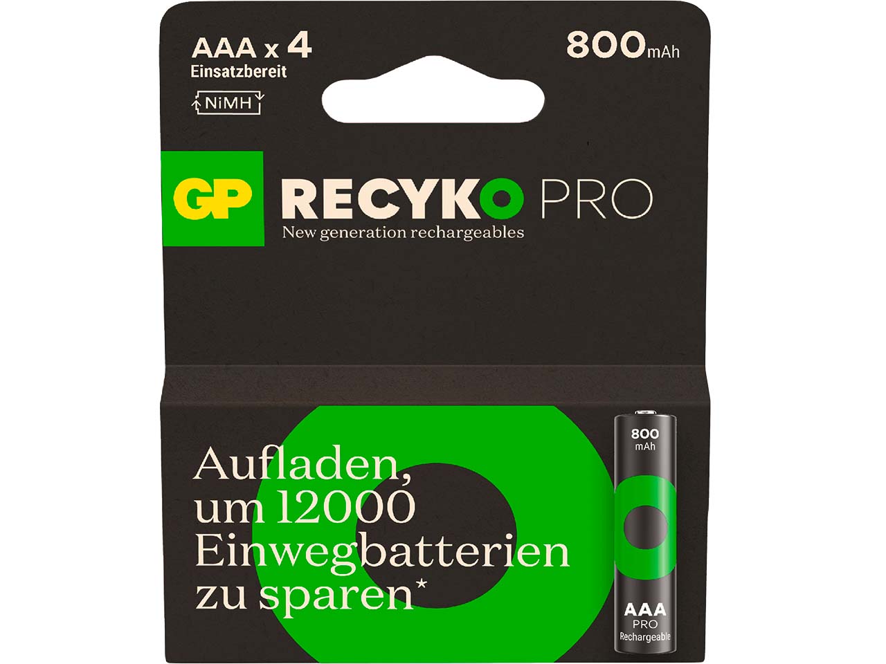 GP Battery Ready-to-use Akku 'ReCyko+ Pro' Micro AAA, 1,2V, 800 mAh, 4 Stk.