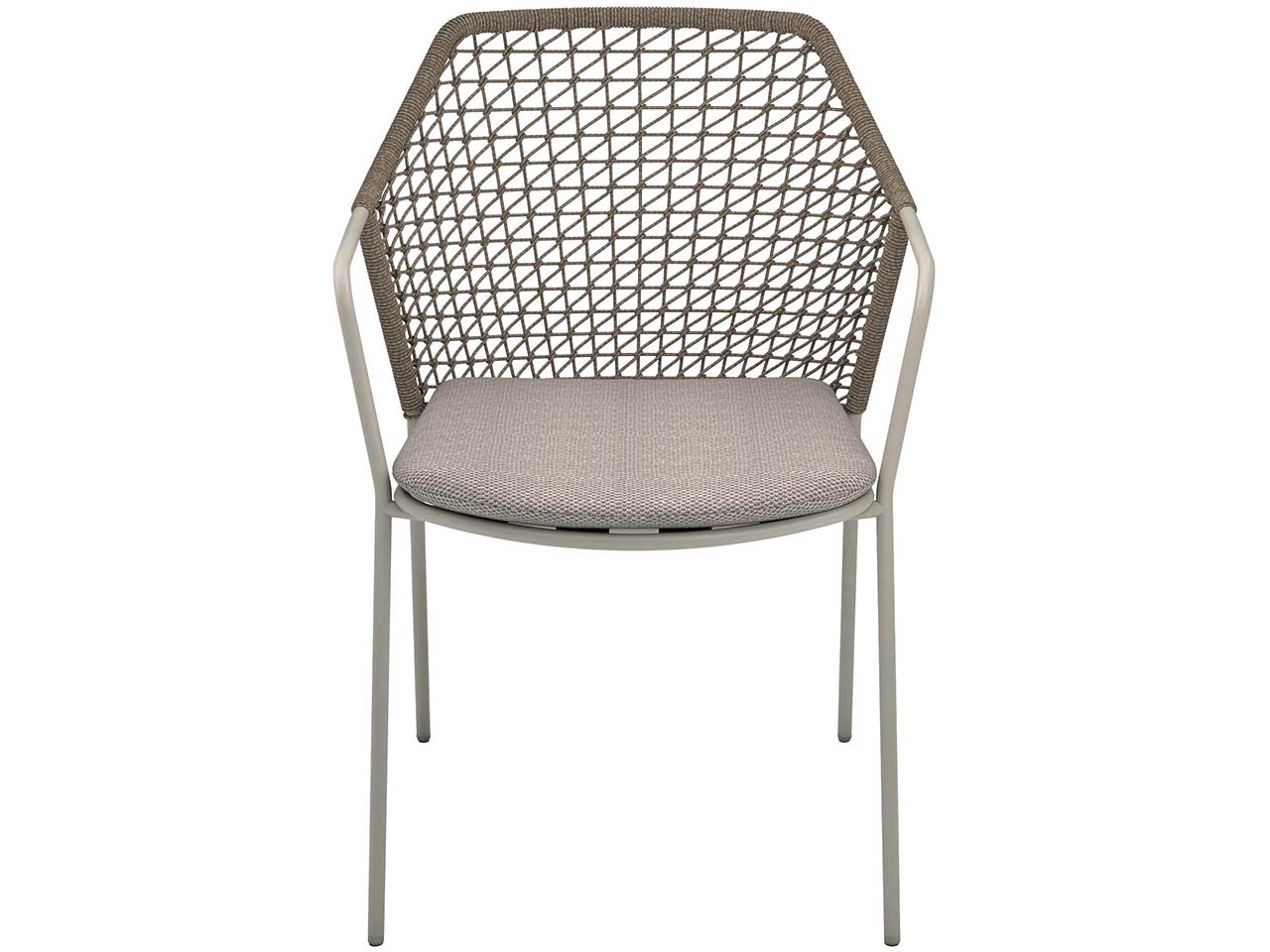 Diese vier Stühle bringen modernes Flair in den Garten und auf die Terrasse. Das minimalistische Design mit elegantem Seilgeflecht an Rückenlehne und Sitzfläche wirkt besonders einladend. Die Outdoor-Stühle sind perfekt für den Essbereich im Freien geeignet. Sie sind stapelbar und dank Sitzkissen sehr bequem.