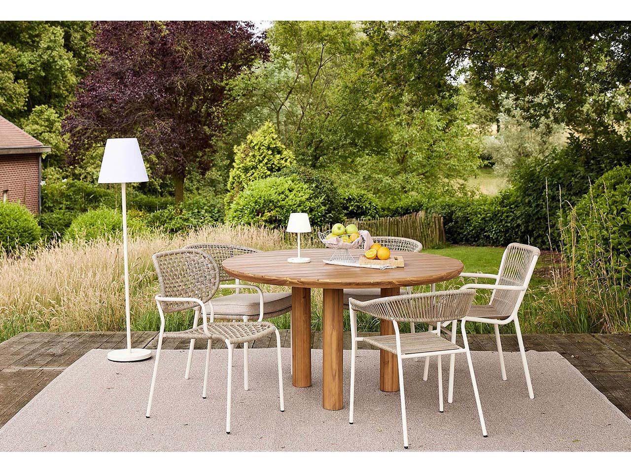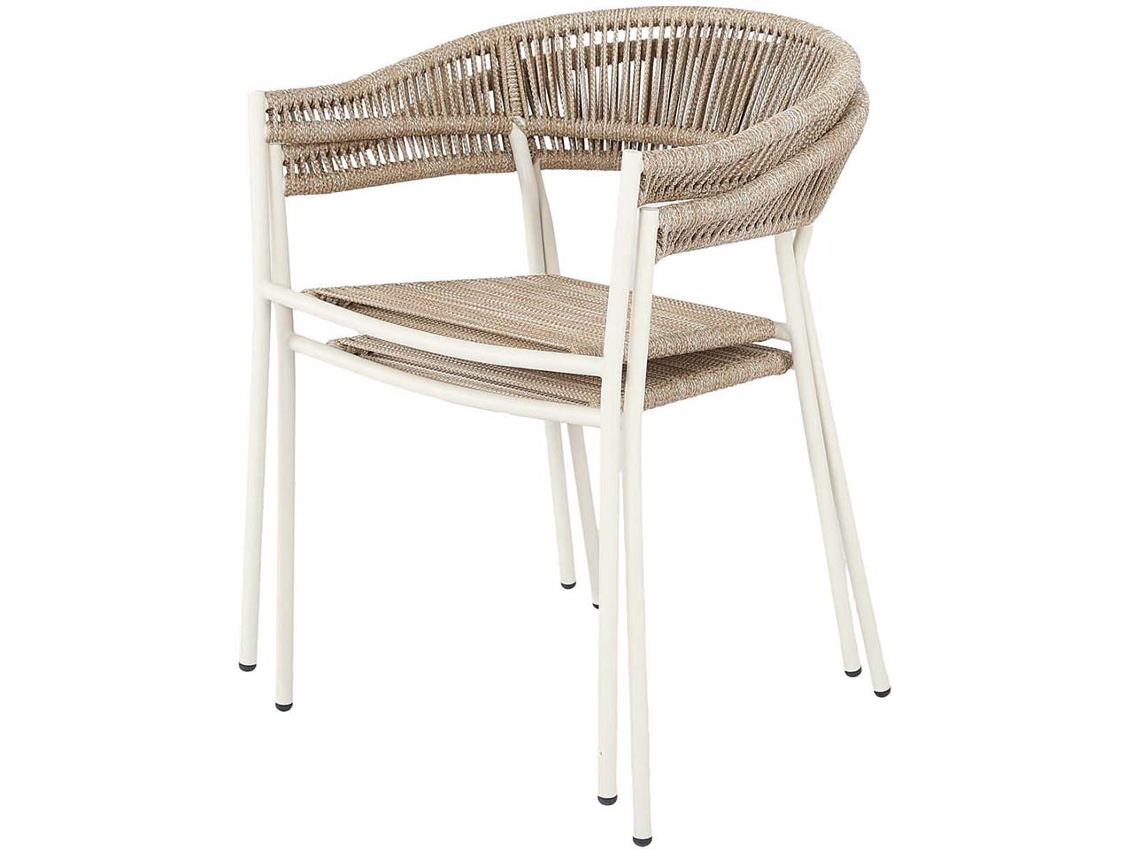 Schlichte, moderne Eleganz zeichnet diesen Gartenstuhl aus, der im praktischen 4er-Pack daherkommt. Sein robustes Gestell gewährleistet langlebigen Sitzkomfort. Das Seilgeflecht an Rückenlehne und Sitzfläche verleiht dem Stuhl das gewisse Etwas. Der stapelbare Gartenstuhl mit Armlehnen ist pflegeleicht und bereitet im Garten, auf der Terrasse oder dem Balkon lange Freude.