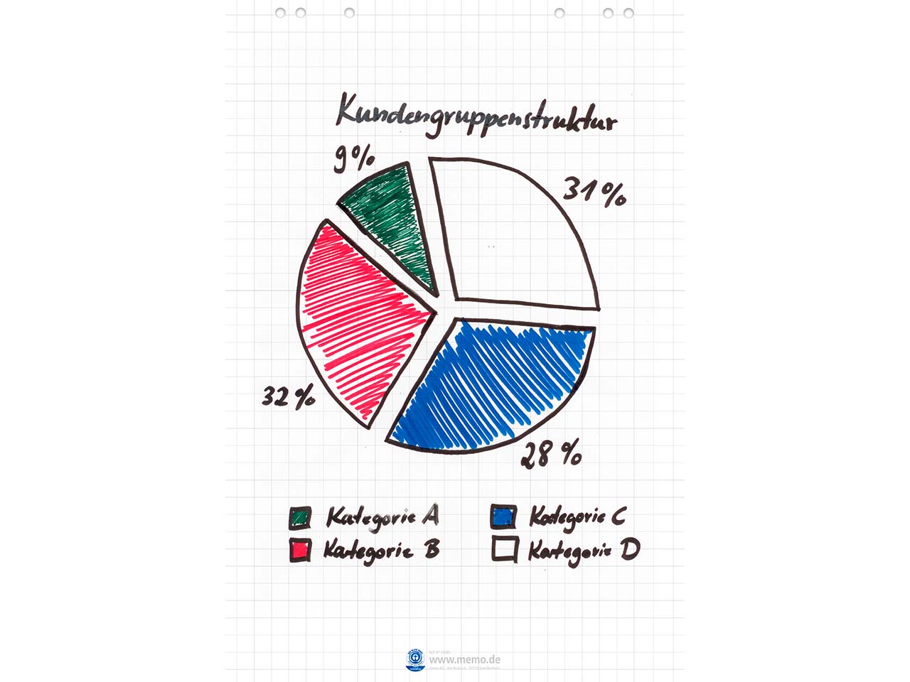 Für einen noch besseren und produktiveren Workflow: Mit diesem premiumweißen Flipchartblock aus 100 % Recyclingpapier und Blauer Engel-Zertifizierung unserer memo Eigenmarke lassen sich Ideen ganz einfach visualisieren. Bei Meetings, Präsentationen oder auch bei Gruppenarbeiten sind diese Flipchart-Papiere perfekt geeignet. Ganz unabhängig von technischer Ausstattung können Gedanken veranschaulicht und vorgestellt werden. Der Weißegrad von diesem premiumweißen Papier beträgt 98 % nach ISO und wurde ganz ohne optische Aufheller und ohne chlorhaltige Bleichmittel erzeugt. Durch diesen hohen Wert ist dieses Produkt der ideale Ersatz für Frischfaserpapier. Dieser Block ist dank der 6-fach Lochung mit Abreißkante universell einsetzbar. Zudem sind die Blätter vorne kariert und auf der Rückseite blanko. Pro Block je 20 Blatt, Grammatur 80 g/ m², B 68 x H 99 cm. 1 Pack = 5 Blöcke