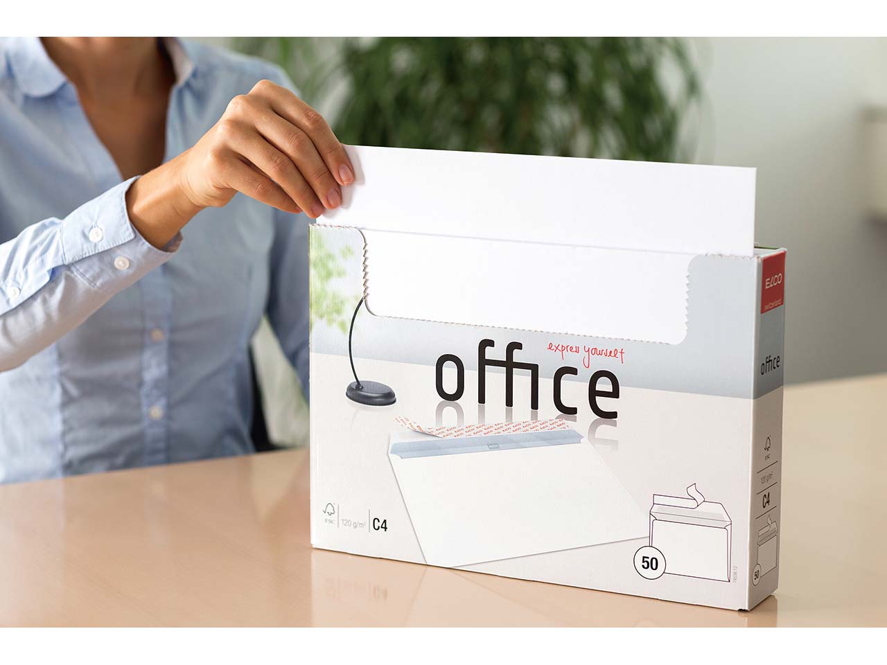 Die hochweißen ELCO Versandtaschen im Format DIN C4 haben einen Innendruck für mehr Datenschutz beim Versand und überzeugen mit ihrer hochwertigen 120 g/m²-Qualität. Die FSC-zertifizierten Umschläge mit Haftklebeverschluss haben kein Fenster und lassen sich aus der Shopbox einzeln ganz ohne Zerreißen oder Zerknittern entnehmen. Inhalt 50 Stk.