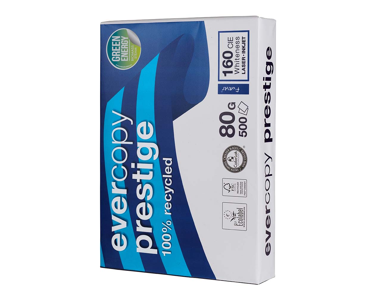 Das "Evercopy Prestige" von Clairefontaine besteht zu 100 % aus Recyclingpapier. Es ist nach FSC und Carbon Progress zertifiziert.