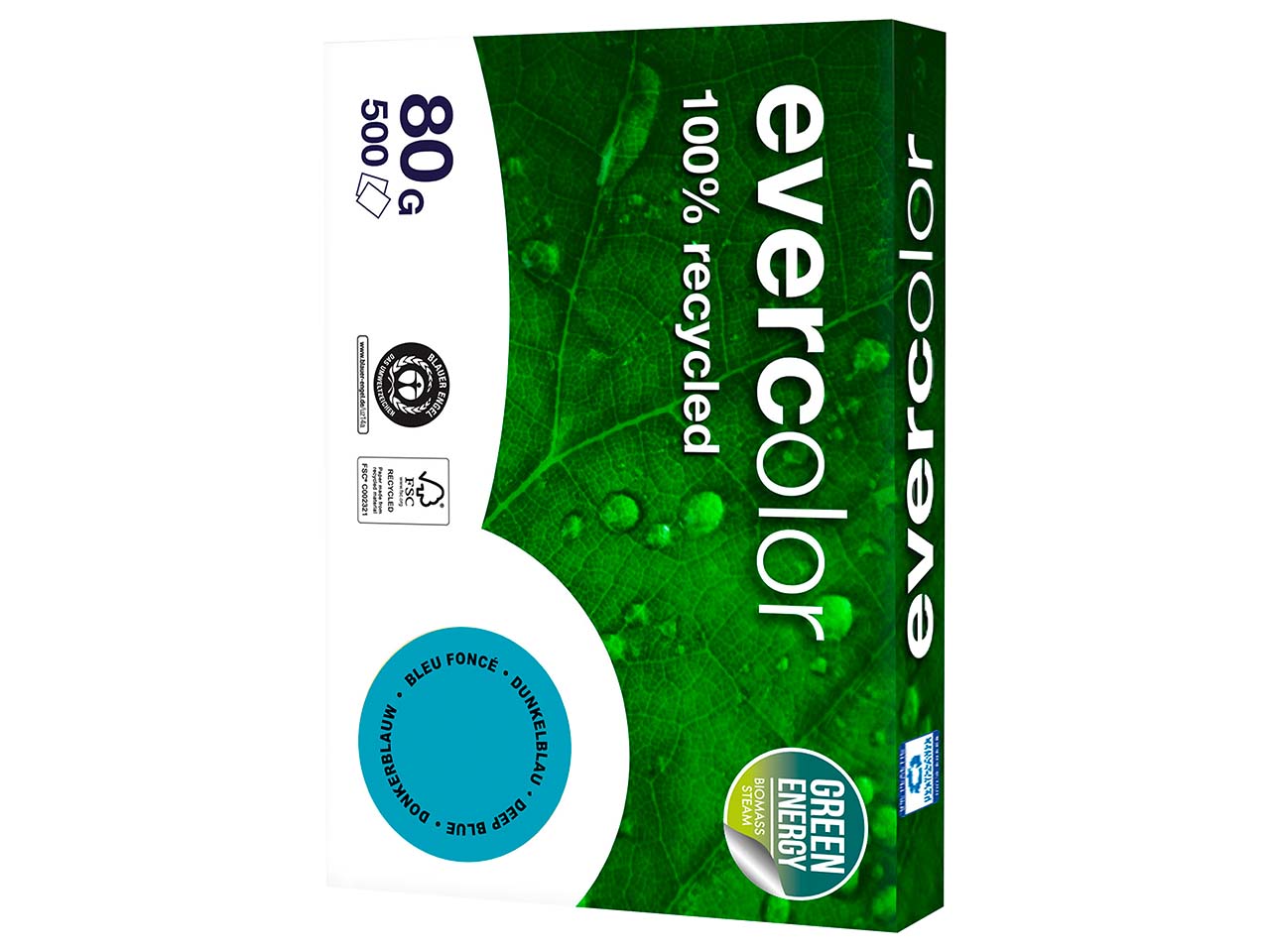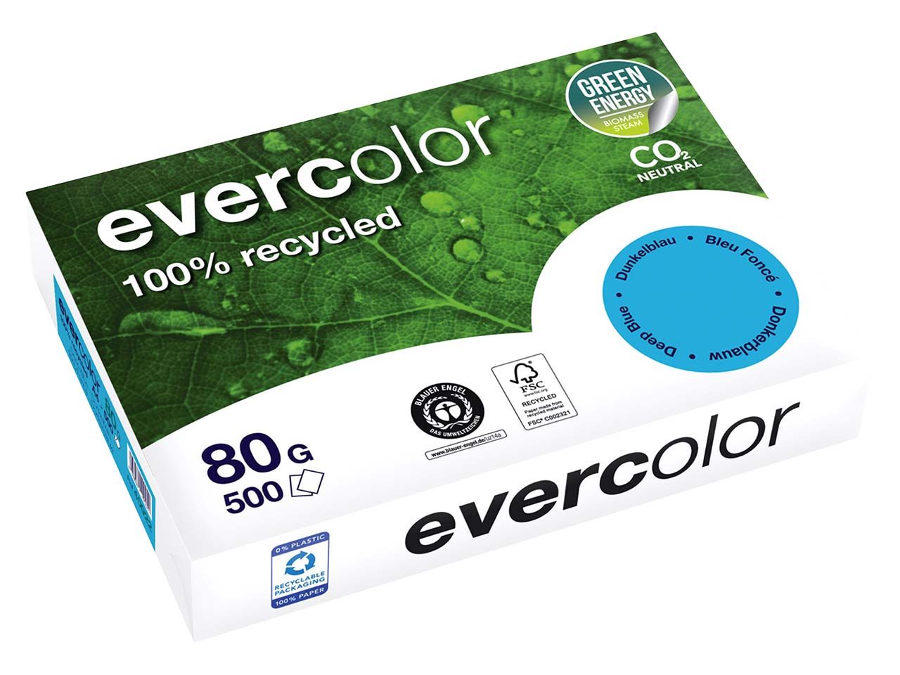 Das farbige Kopierpapier "Evercolor" von Clairfontaine eignet sich für eine Vielzahl von Anwendungen im Büro. Hergestellt ist das mit dem Blauen Engel ausgezeichnete Büropapier zu 100 % aus Recyclingpapier. Es hat optimale Laufeigenschaften auf Kopierern, Inkjet- und Laserdruckern. Grammatur 80 g/m², Format DIN A4. Inhalt 500 Blatt.