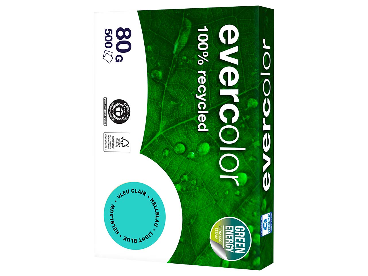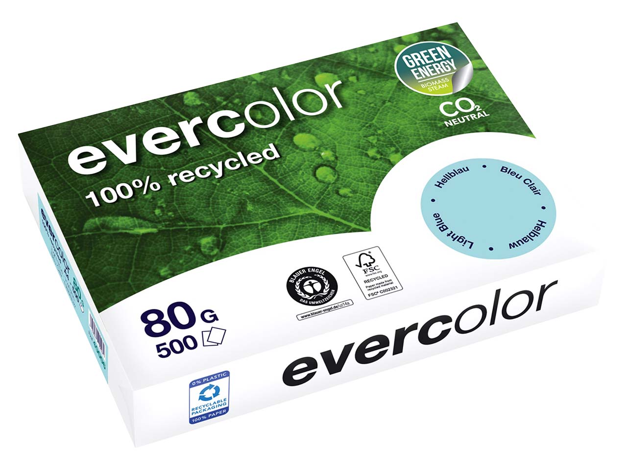 Das farbige Kopierpapier "Evercolor" von Clairfontaine eignet sich für eine Vielzahl von Anwendungen im Büro. Hergestellt ist das mit dem Blauen Engel ausgezeichnete Büropapier zu 100 % aus Recyclingpapier. Es hat optimale Laufeigenschaften auf Kopierern, Inkjet- und Laserdruckern. Grammatur 80 g/m², Format DIN A4. Inhalt 500 Blatt.