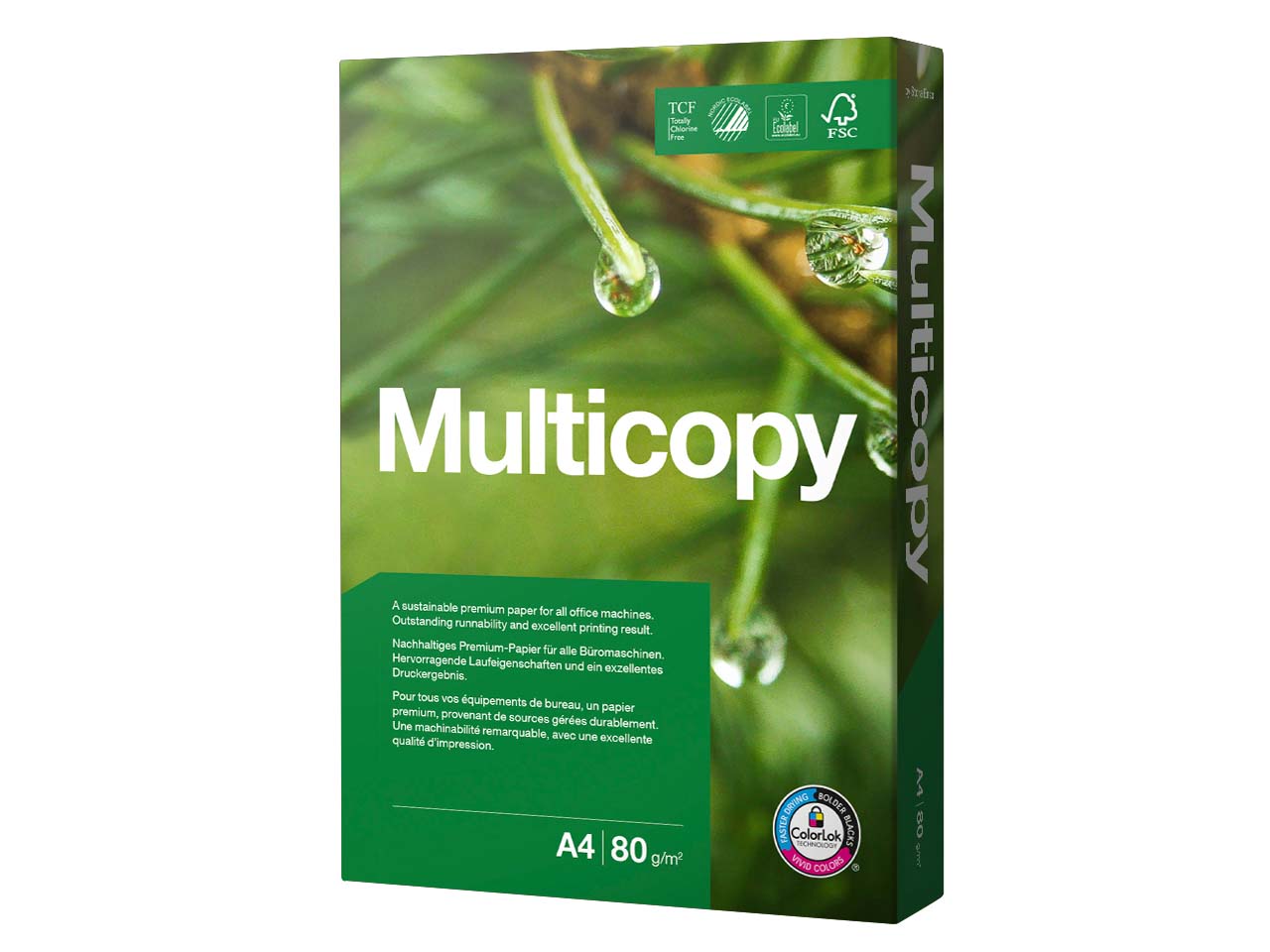 Hier ist der Name Programm: Das vielseitige Druck- und Kopierpapier "Multicopy" erzielt auf allen herkömmlichen Laserdruckern und Kopierern hervorragende Ergebnisse. Durch den Einsatz eines gleichmäßigen Faserstoffes und der Herstellung mit "ColorLok"-Technologie ist es auch für Inkjet-Drucker geeignet. Der Weißegrad des TCF-gebleichten Papiers beträgt 168 nach CIE bzw. 101 % nach ISO, das Papier ist gemäß DIN ISO 9706 höchst alterungsbeständig. Dadurch ist das Multifunktionspapier auch für die dauerhafte Archivierung geeignet. Format DIN A4, Grammatur 80 g/m². 1 Pack = 500 Blatt.