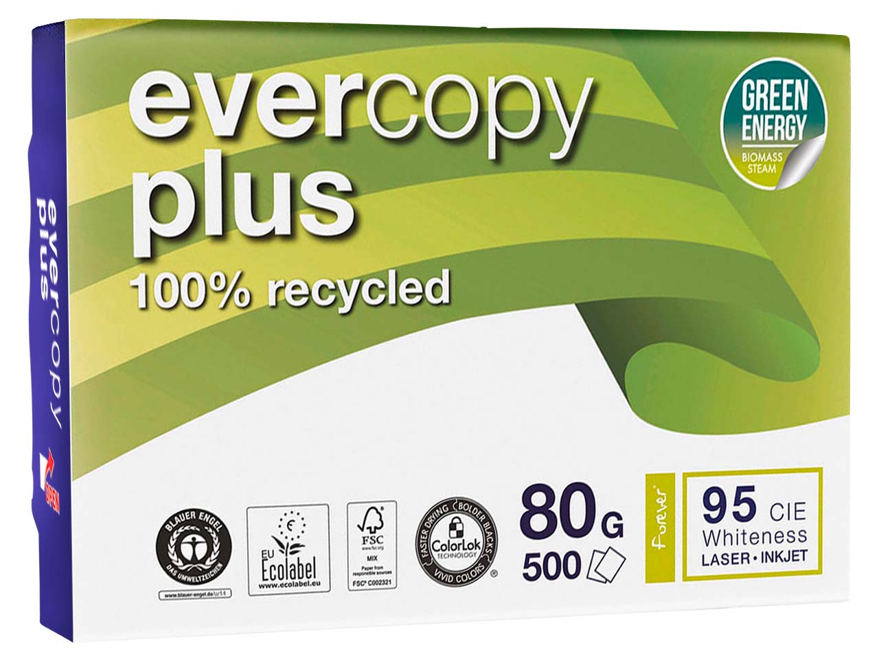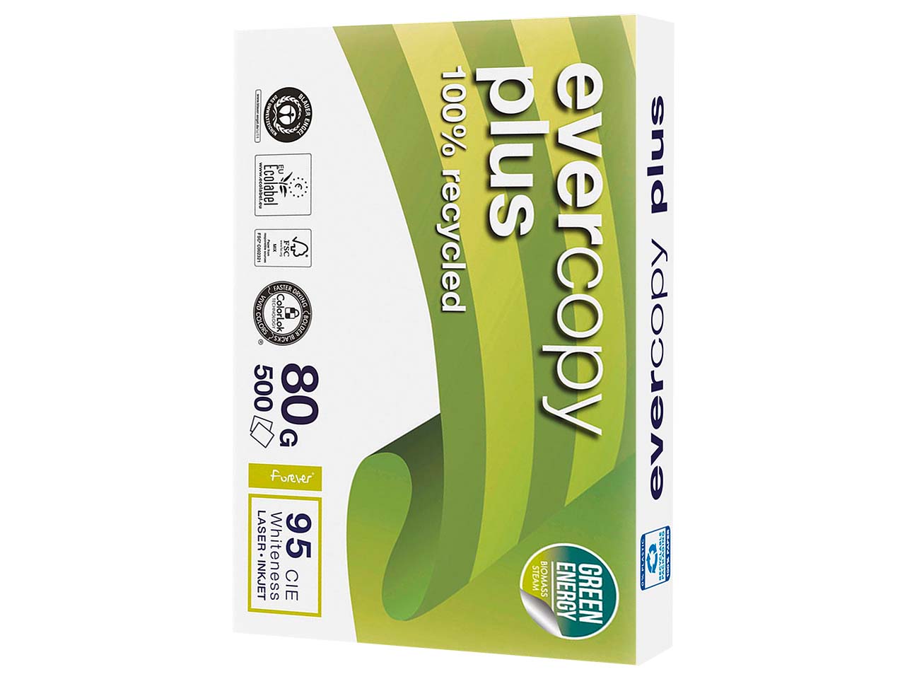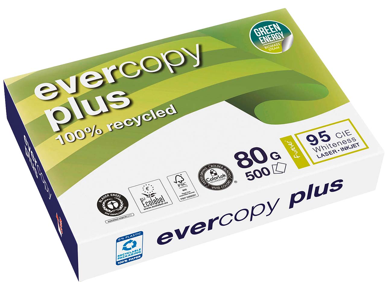- Hochwertiges Recycling-Kopierpapier mit natürlichem Weißegrad