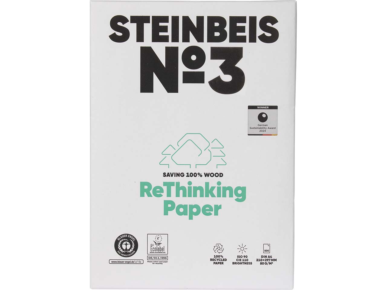Steinbeis Recycling Kopierpapier "PureWhite" DIN A4, 2-fach gelocht, 500 Blatt