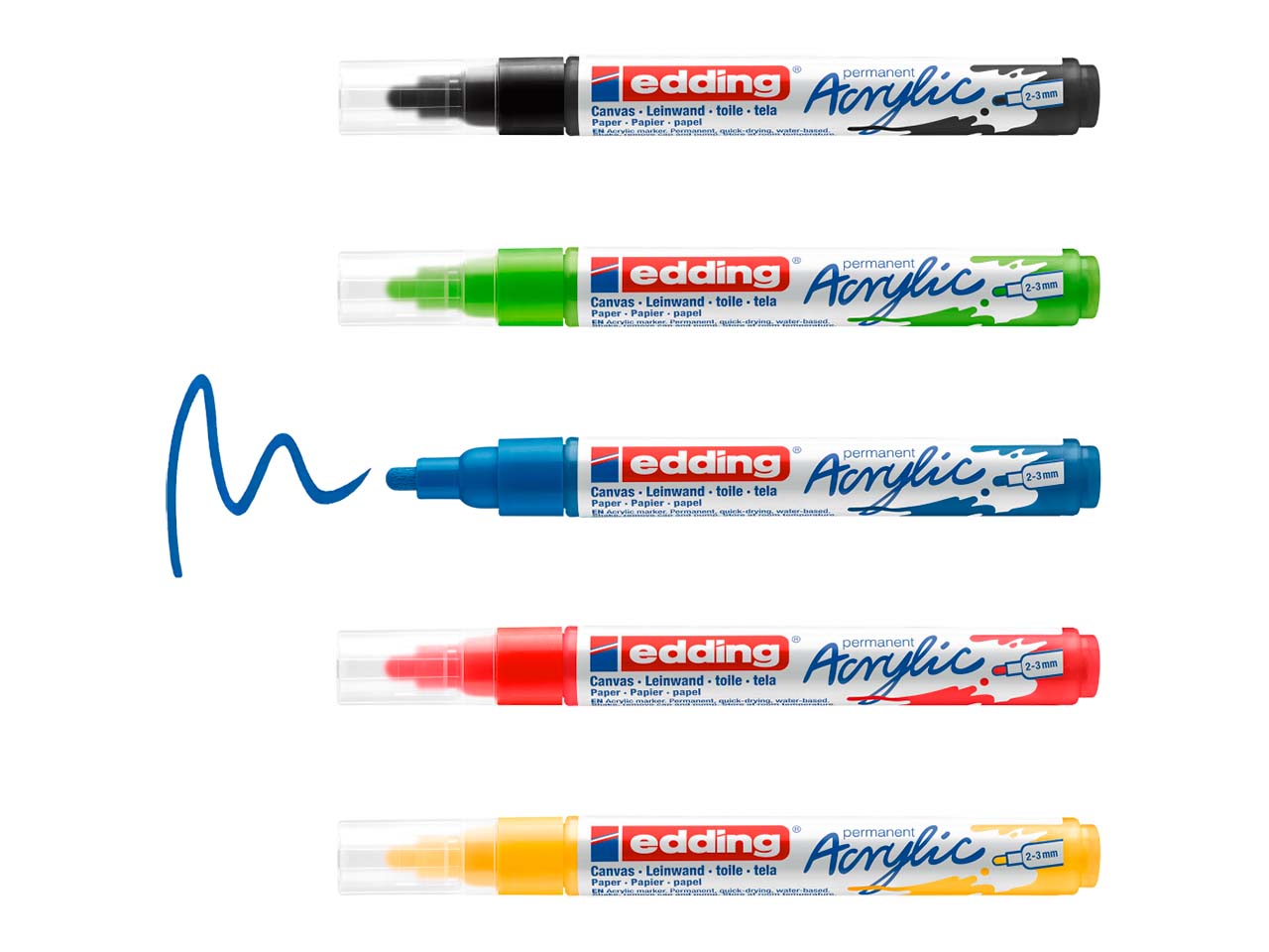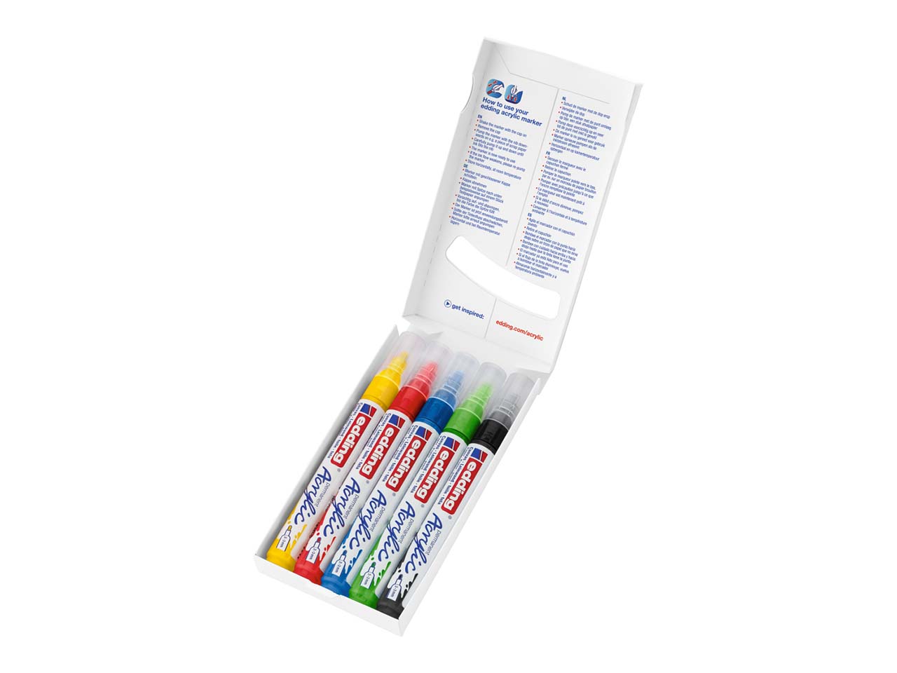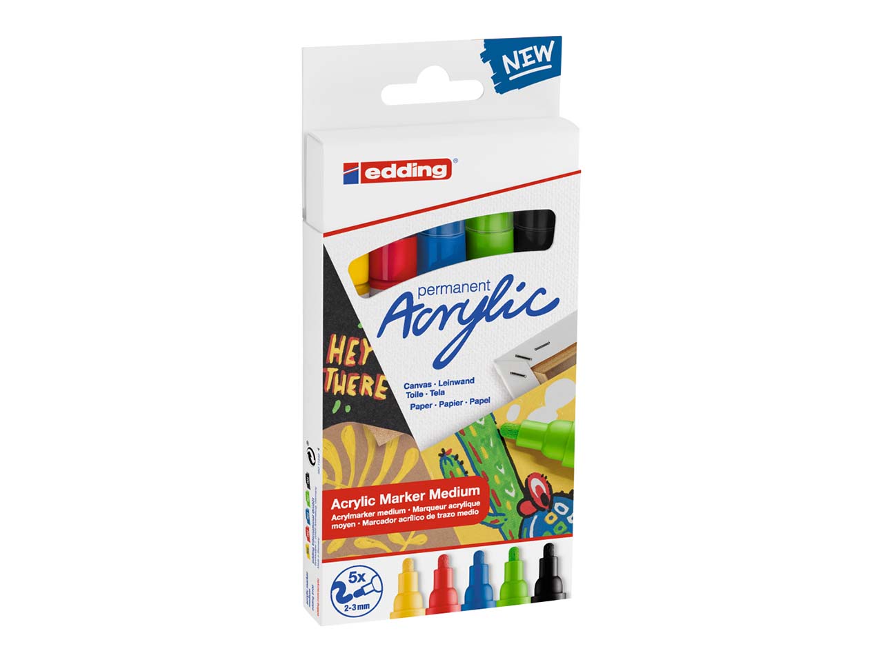 5er Set edding Acrylmarker "Acrylic 5100" basic, Rundspitze, farbig sortiert
