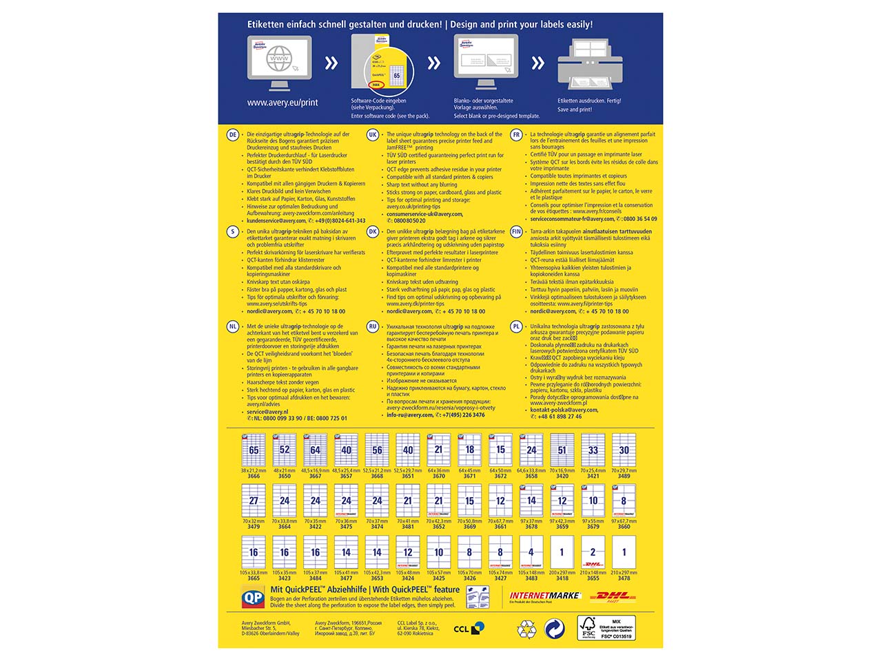 Avery Zweckform garantierten mit Forschung, Entwicklung, Produktion, Logistik und Verwaltung am Firmenstandort in Bayern höchste Qualitätsstandards. Das Obermaterial der chlorfrei gebleichten Etiketten besteht zu 100 % aus FSC-zertifiziertem Papier aus nachhaltig bewirtschafteten Wäldern. Der Forest Stewardship Council (FSC) ist eine gemeinnützige Organisation, die sich weltweit für eine ökologische und sozialverträgliche Waldbewirtschaftung und damit gegen den Raubbau unserer Wälder einsetzt. Nur Produkte, die strenge Kriterien erfüllen und deren Rohstoffe unabhängig zertifiziert sind, erhalten das FSC-Siegel.