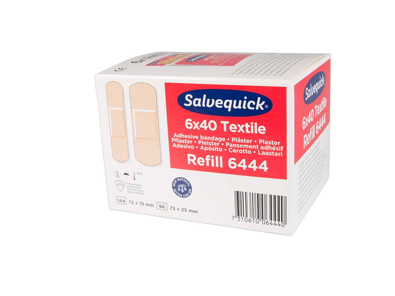 Die elastischen Pflaster "REF 6444" von Salvequick sind ideal, um kleinere Wunden vor Schmutz zu schützen und die Heilung zu fördern. Der Wundschnellverband wird in einer Refill-Pappverpackung geliefert, die in den Salvequick Spender für Wundschnellverband passt. Erhältlich als Kleinpack oder als Großpack mit 6 x 40 Stk.