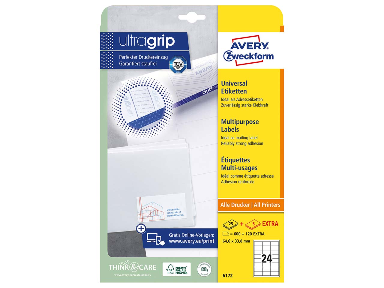 Avery Zweckform Universaletiketten "6172" 64,4 x 33,8 mm, 600 Stk.
