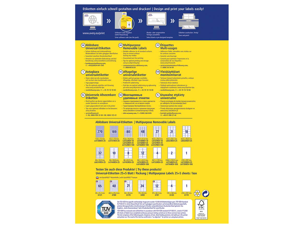 Avery Zweckform Universaletiketten "L4737REV-25" 63,5 x 29,6 mm, 675 Stk.