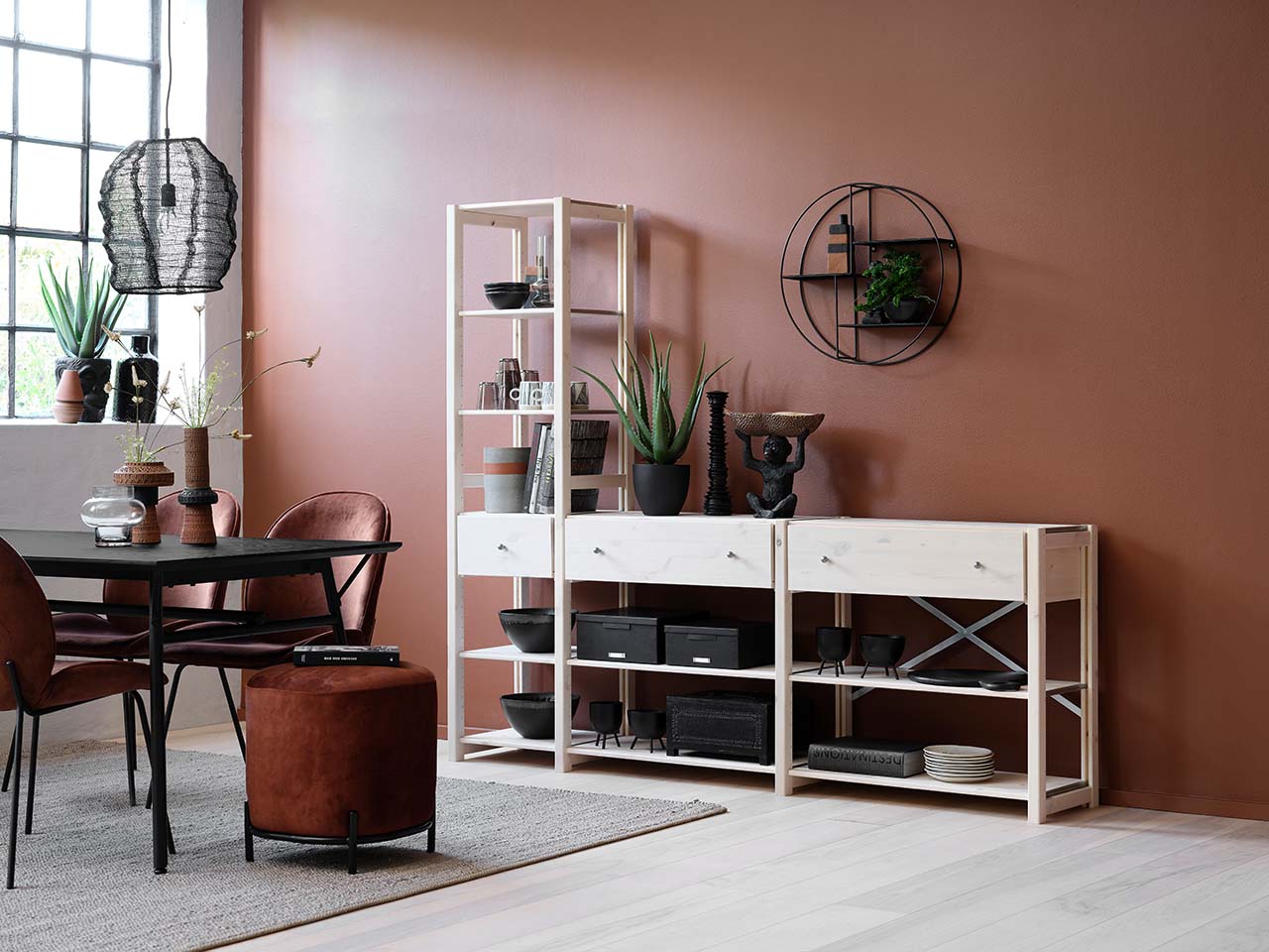 Das Anbauregal "ABC" wird aus nordischem Kiefernholz gefertigt.