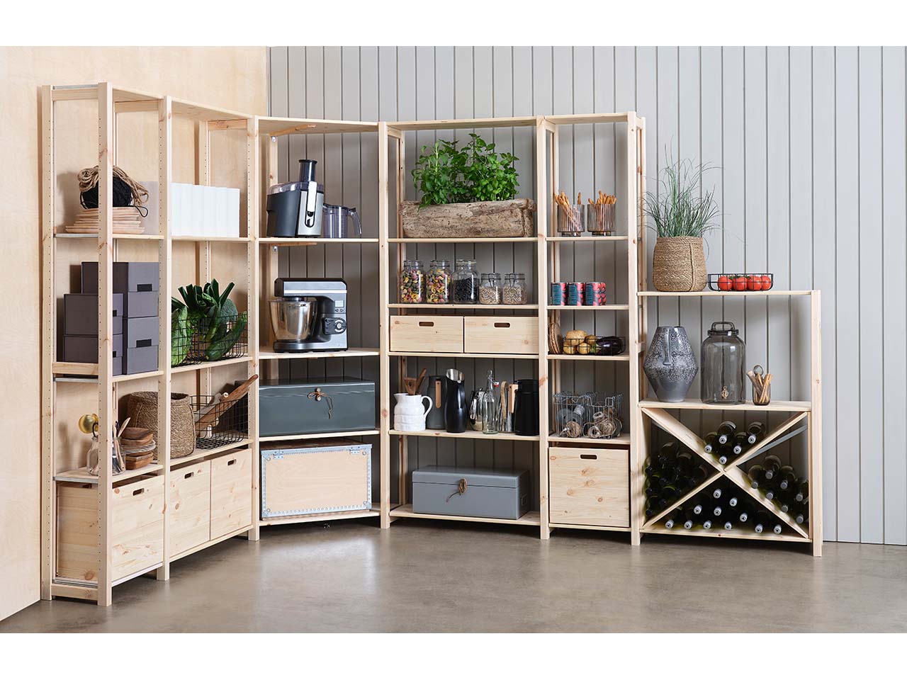 Das Anbauregal "ABC" wird aus nordischem Kiefernholz gefertigt.