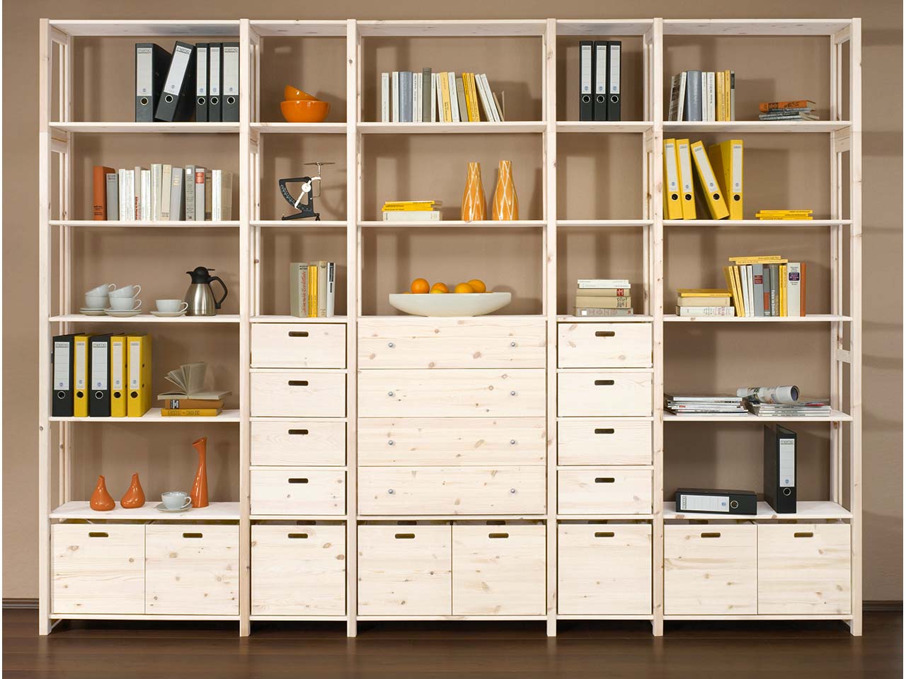 Natürliche Stabilität: Das Anbauregal "ABC" wird aus nordischem Kiefernholz hergestellt, das je nach Farbgebung lasiert oder unbehandelt ist. In der Lieferung des Regals sind 6 Fachböden enthalten, die sich in der Höhe variabel anbringen lassen. B 79 x T 40 x H 198 cm.