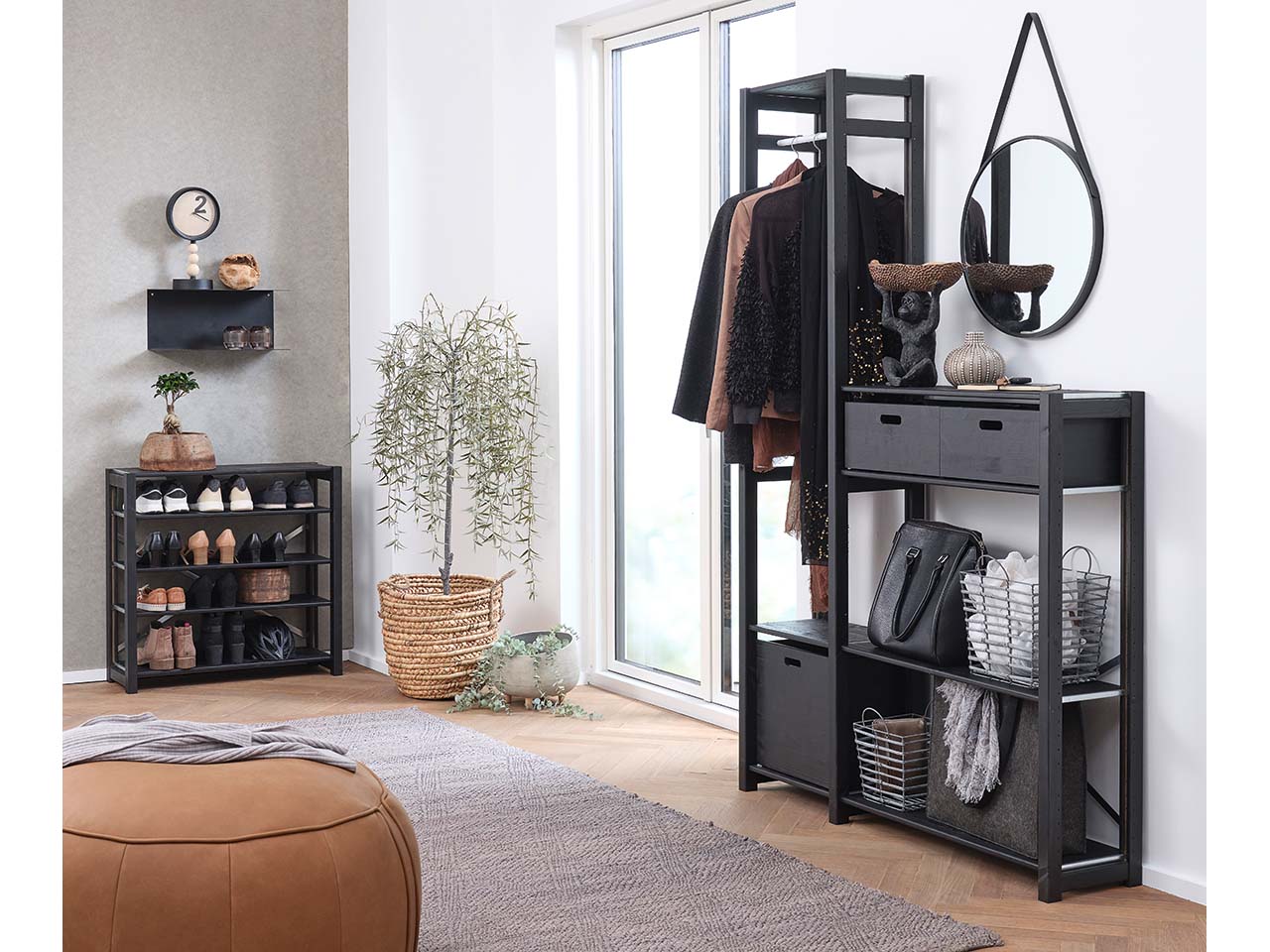 Das Regal "ABC" überzeugt mit Stabilität und Ökologie. Die Herstellung erfolgt aus unbehandeltem, nordischem Kiefernholz. Die Regalböden sind mit einer Traglast von 50 kg pro Boden äußerst belastbar. Das Regal lässt sich beliebig erweitern. Mit verzinkten, unlackierten Beschlägen. Inklusive Stabilisierungsschiene. Leichte Montage. B 46 x T 30 x H 179 cm. Farbe schwarz.