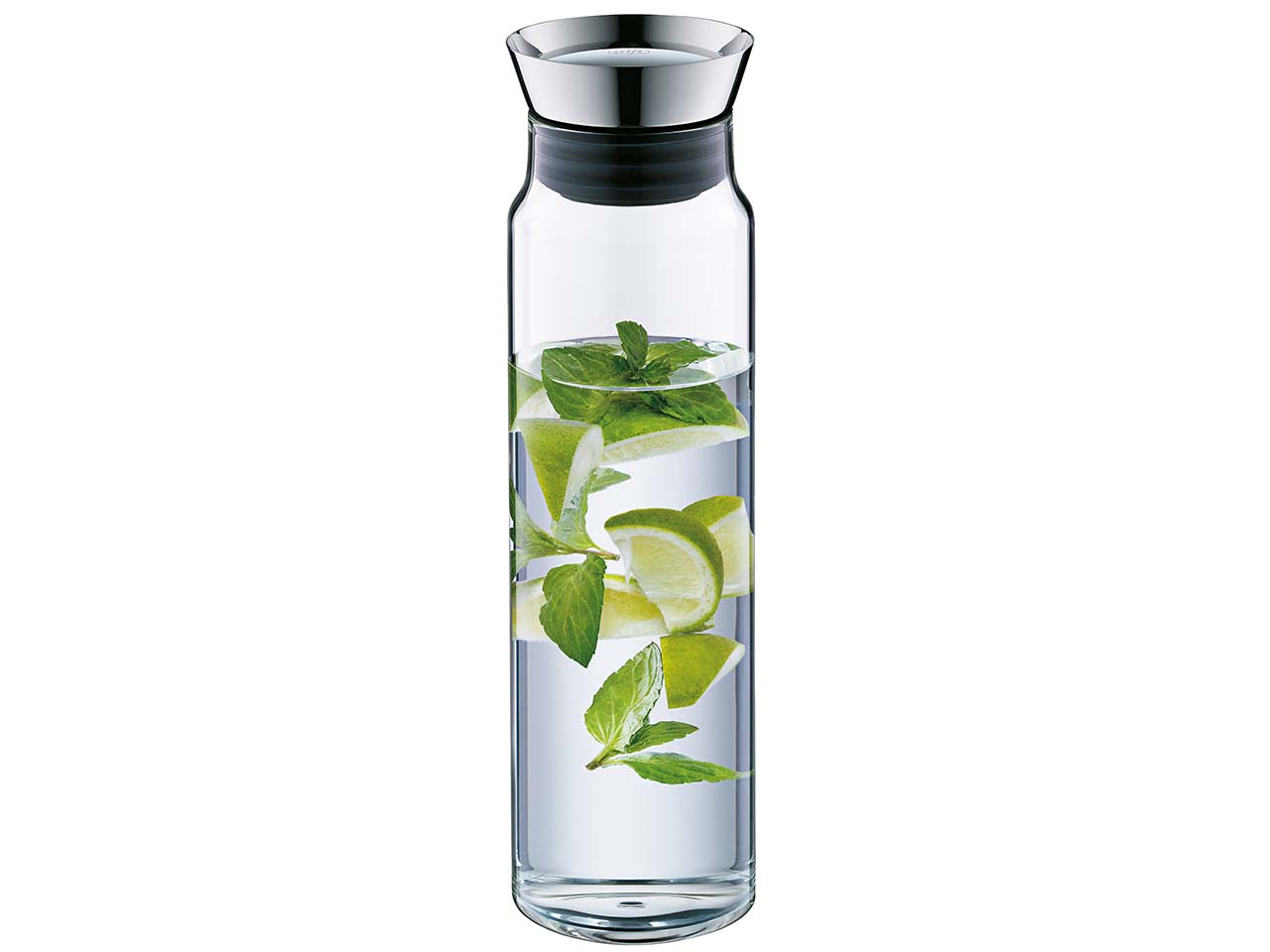 Stilvolle Glaskaraffe, die sich ideal für Wasser pur oder angereichert mit Kräutern oder Obst eignet. Die handgefertigte Karaffe besteht aus hochwertigem, einwandigem Borosilikatglas und zeigt sich beständig gegen Hitze und Kälte. Zur Reinigung kann sie ganz einfach in die Spülmaschine gegeben werden. Ein automatisches 360° ohne Abnahme des Deckels ist möglich. Die Glaskaraffe hat ein Fassungsvermögen von 1 l.